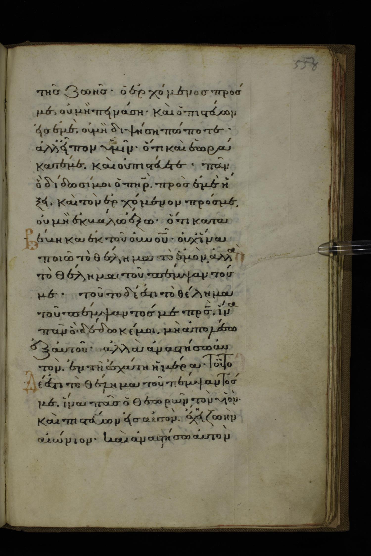 Fourteenth century minuscule of the Gospels on parchment; 332 leaves, 1 column, 20-22 lines per column. Images were taken at the National Library of Greece in Athens.