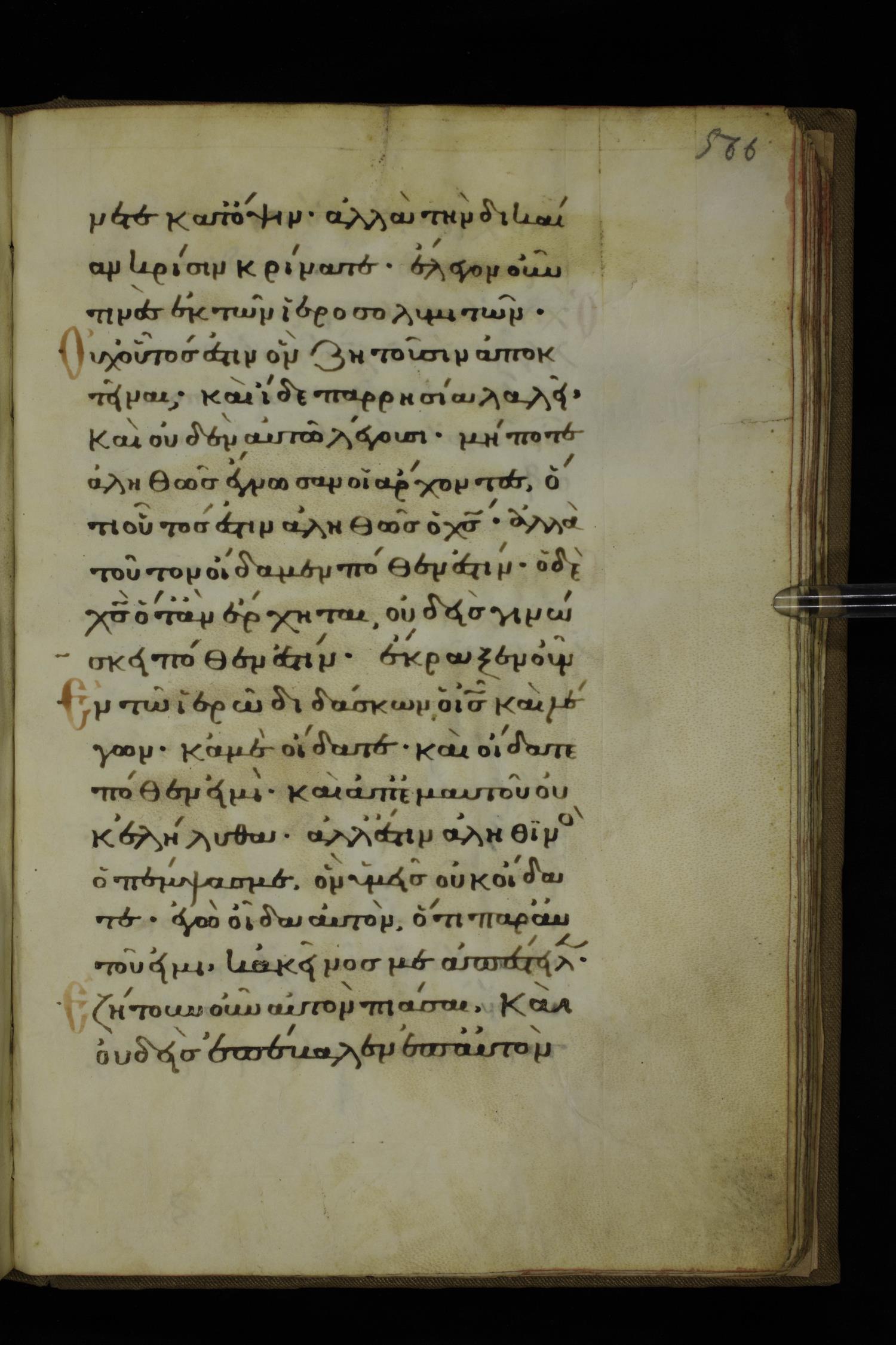 Fourteenth century minuscule of the Gospels on parchment; 332 leaves, 1 column, 20-22 lines per column. Images were taken at the National Library of Greece in Athens.