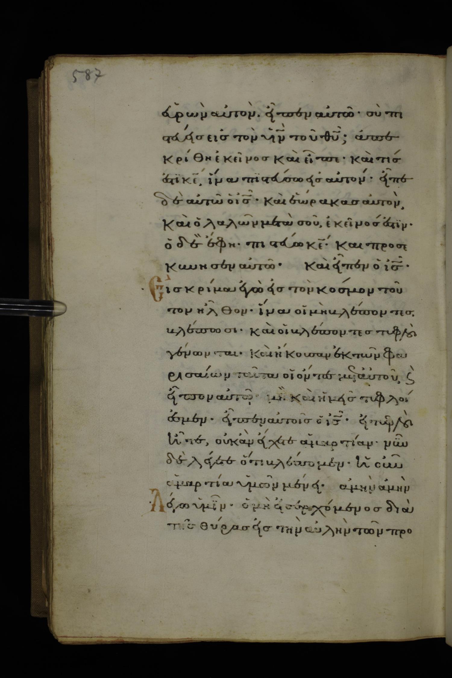 Fourteenth century minuscule of the Gospels on parchment; 332 leaves, 1 column, 20-22 lines per column. Images were taken at the National Library of Greece in Athens.