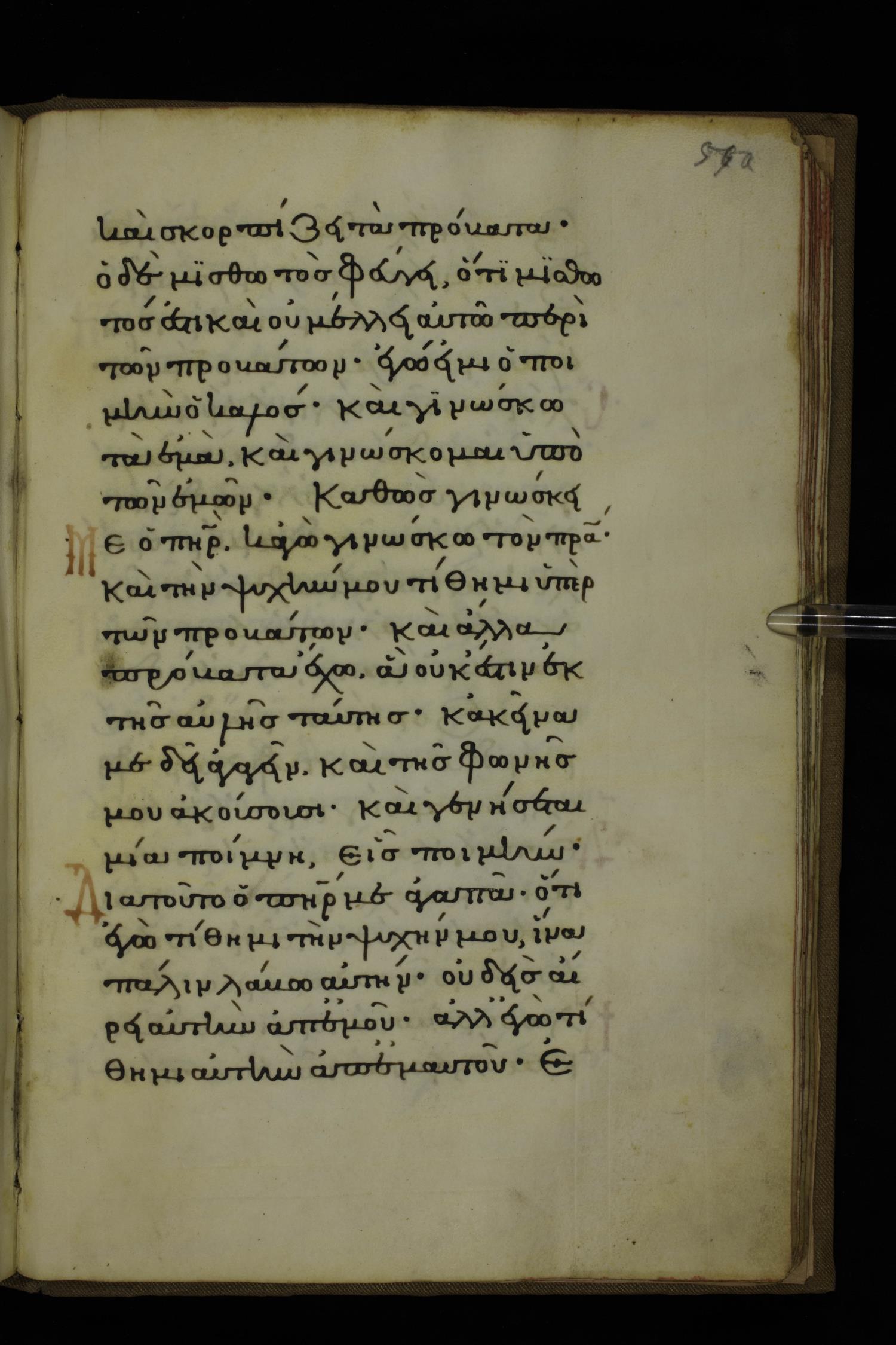 Fourteenth century minuscule of the Gospels on parchment; 332 leaves, 1 column, 20-22 lines per column. Images were taken at the National Library of Greece in Athens.