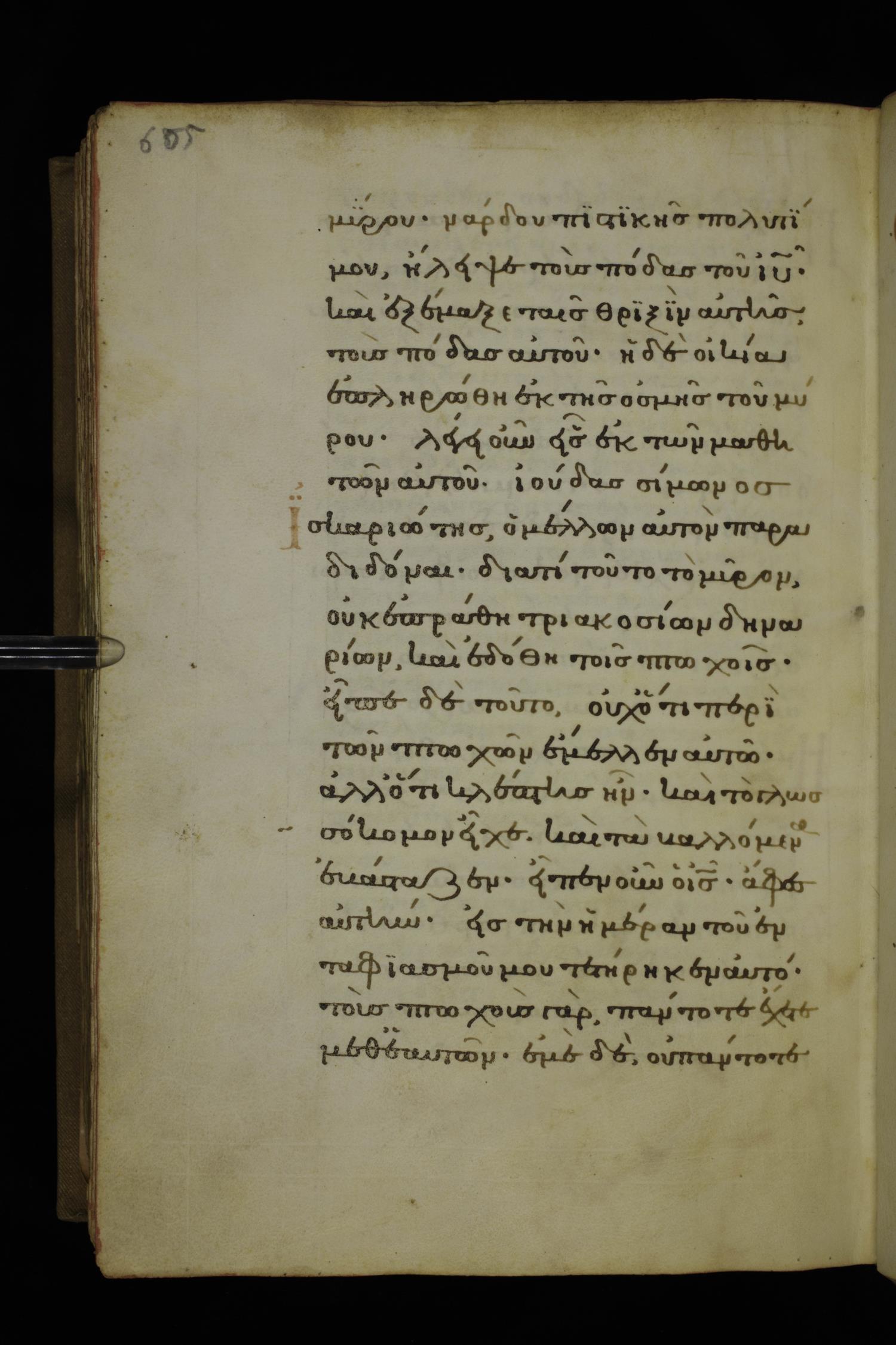Fourteenth century minuscule of the Gospels on parchment; 332 leaves, 1 column, 20-22 lines per column. Images were taken at the National Library of Greece in Athens.