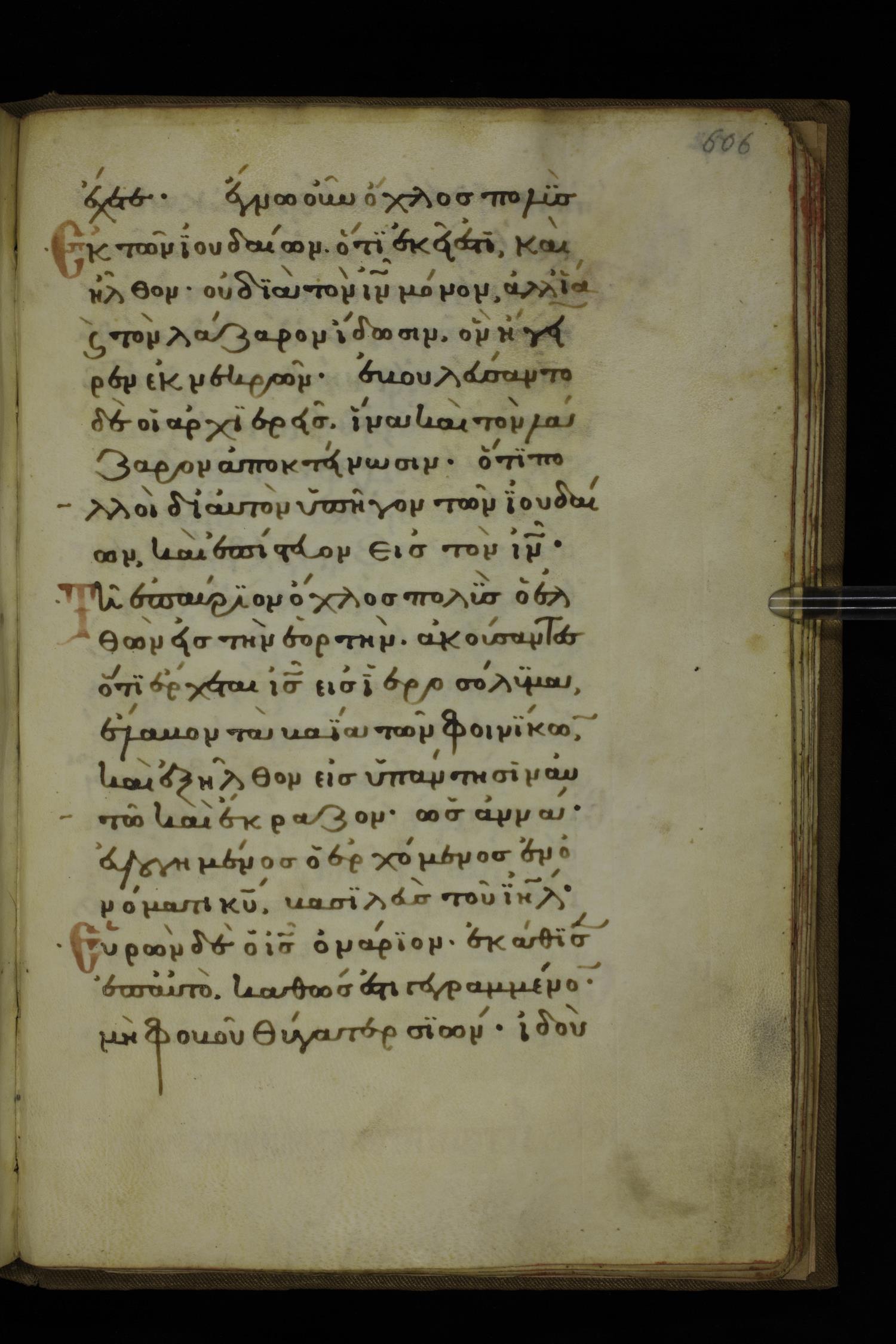 Fourteenth century minuscule of the Gospels on parchment; 332 leaves, 1 column, 20-22 lines per column. Images were taken at the National Library of Greece in Athens.