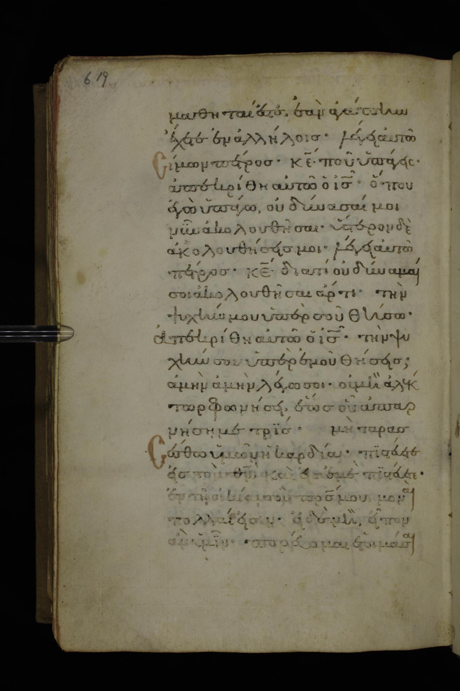 Fourteenth century minuscule of the Gospels on parchment; 332 leaves, 1 column, 20-22 lines per column. Images were taken at the National Library of Greece in Athens.