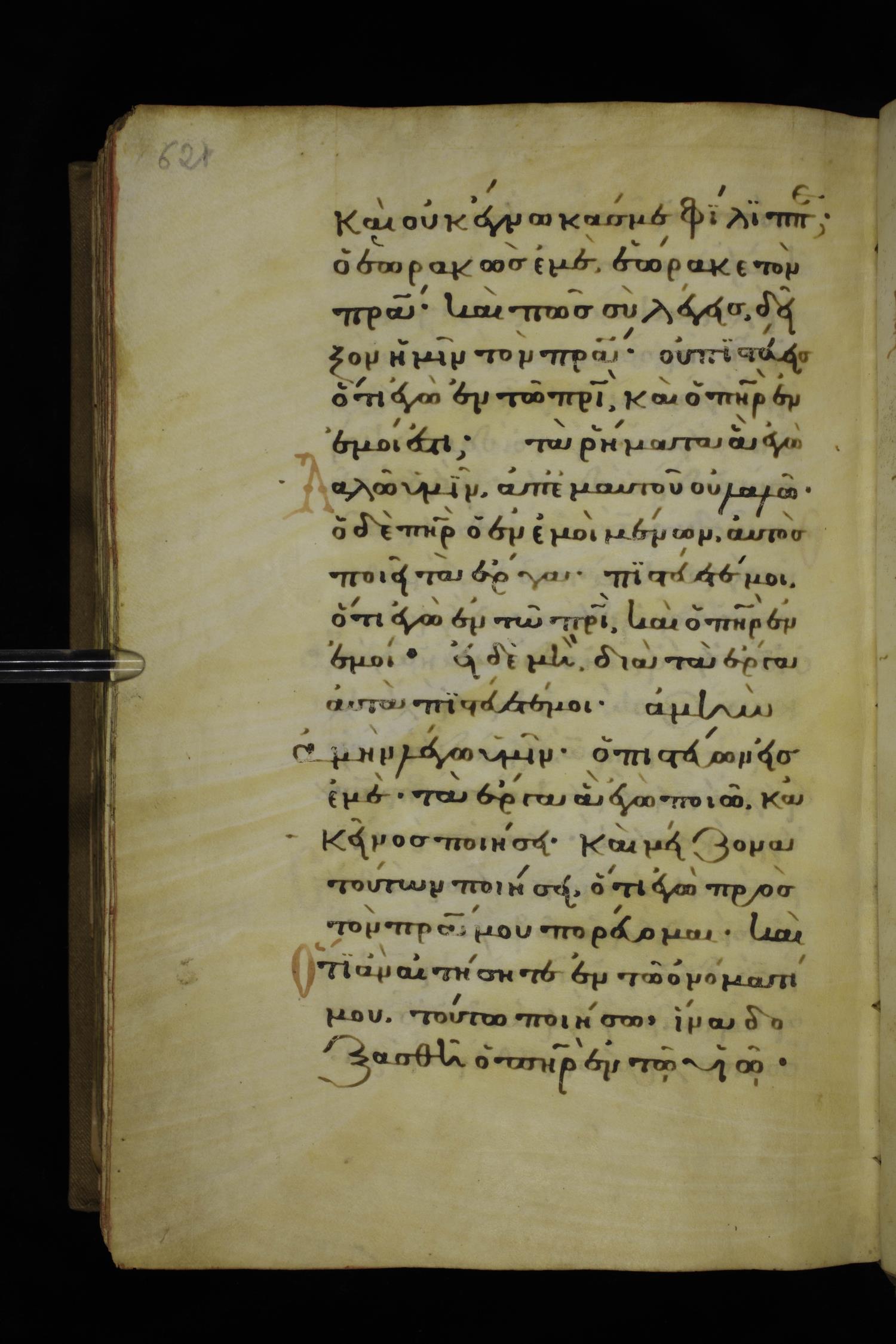 Fourteenth century minuscule of the Gospels on parchment; 332 leaves, 1 column, 20-22 lines per column. Images were taken at the National Library of Greece in Athens.