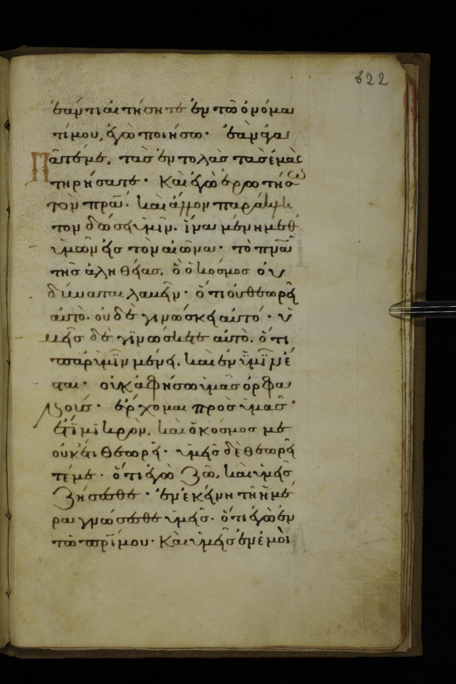 Fourteenth century minuscule of the Gospels on parchment; 332 leaves, 1 column, 20-22 lines per column. Images were taken at the National Library of Greece in Athens.