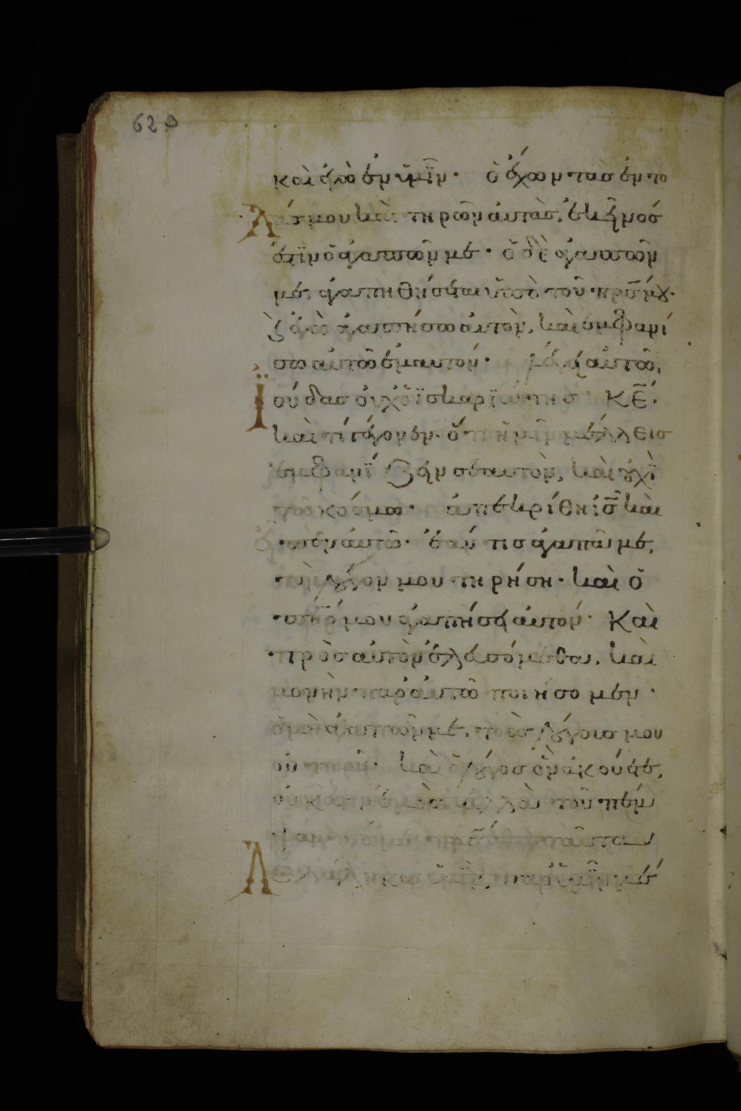 Fourteenth century minuscule of the Gospels on parchment; 332 leaves, 1 column, 20-22 lines per column. Images were taken at the National Library of Greece in Athens.