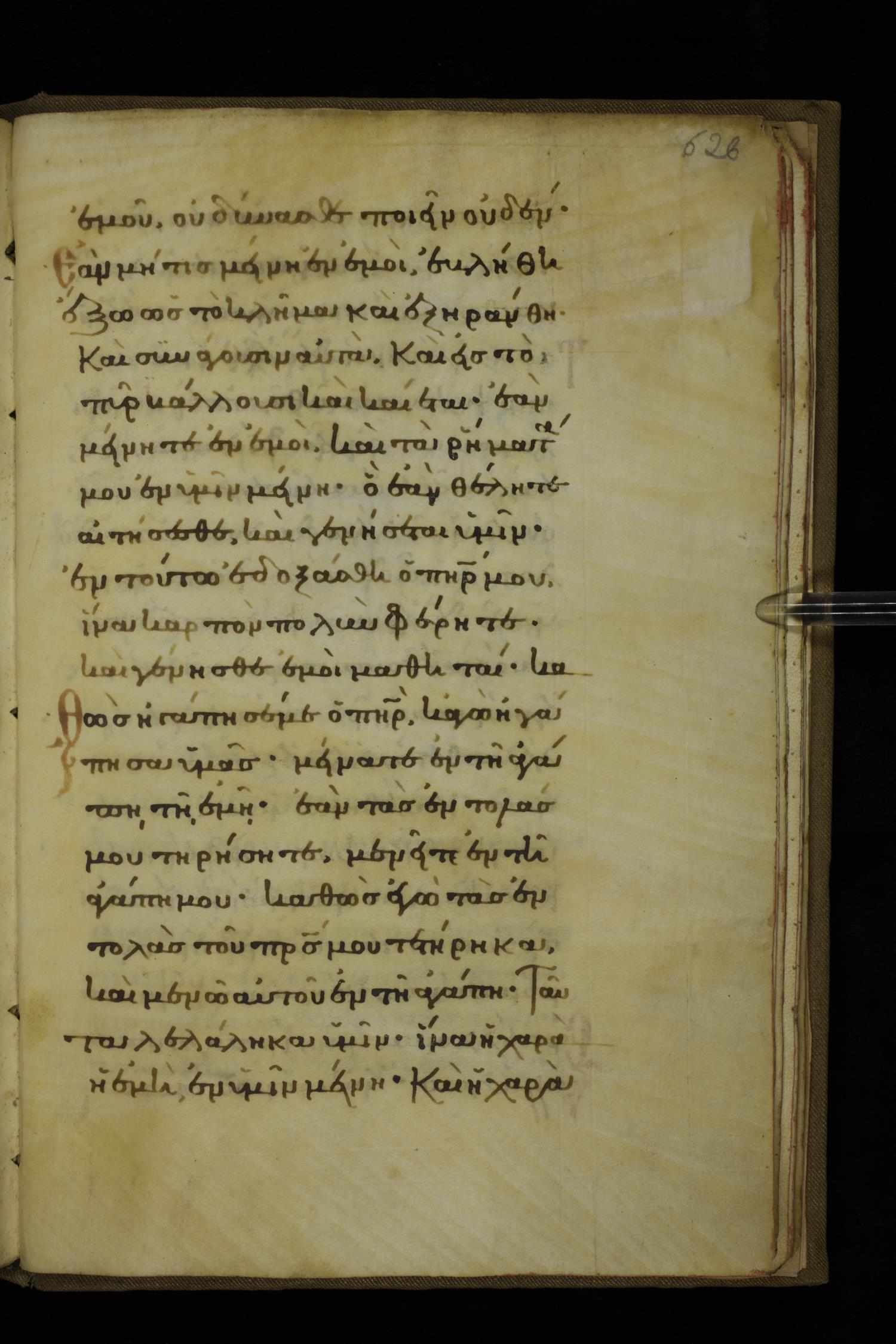 Fourteenth century minuscule of the Gospels on parchment; 332 leaves, 1 column, 20-22 lines per column. Images were taken at the National Library of Greece in Athens.