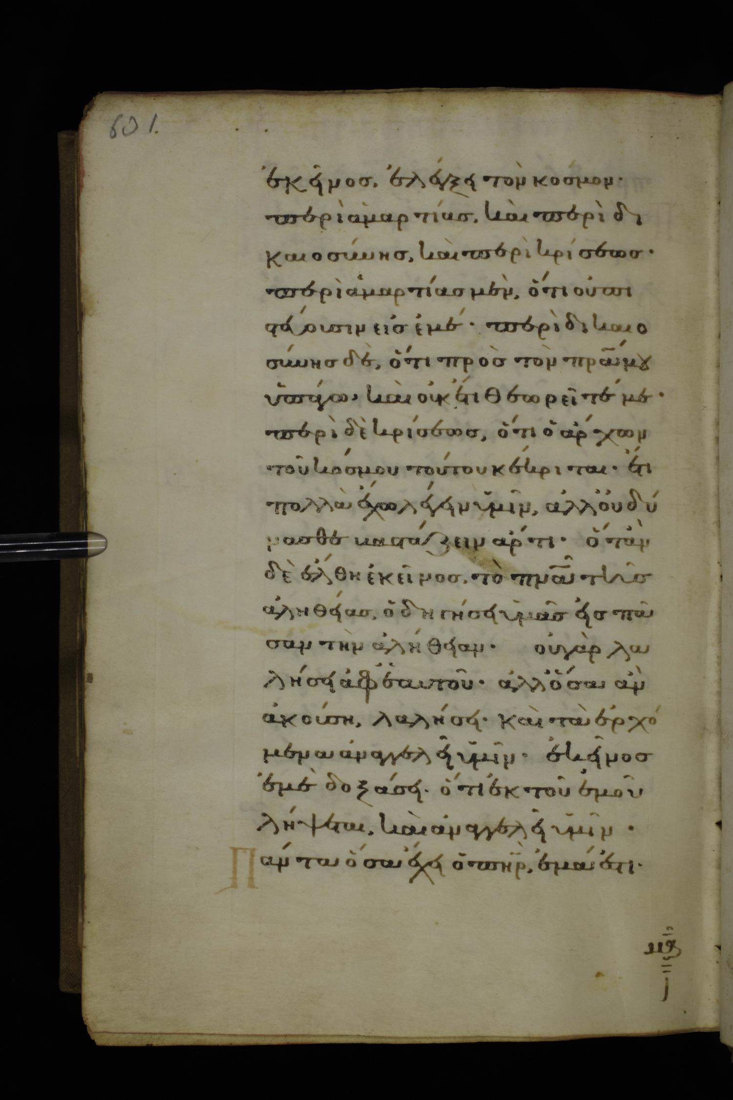 Fourteenth century minuscule of the Gospels on parchment; 332 leaves, 1 column, 20-22 lines per column. Images were taken at the National Library of Greece in Athens.