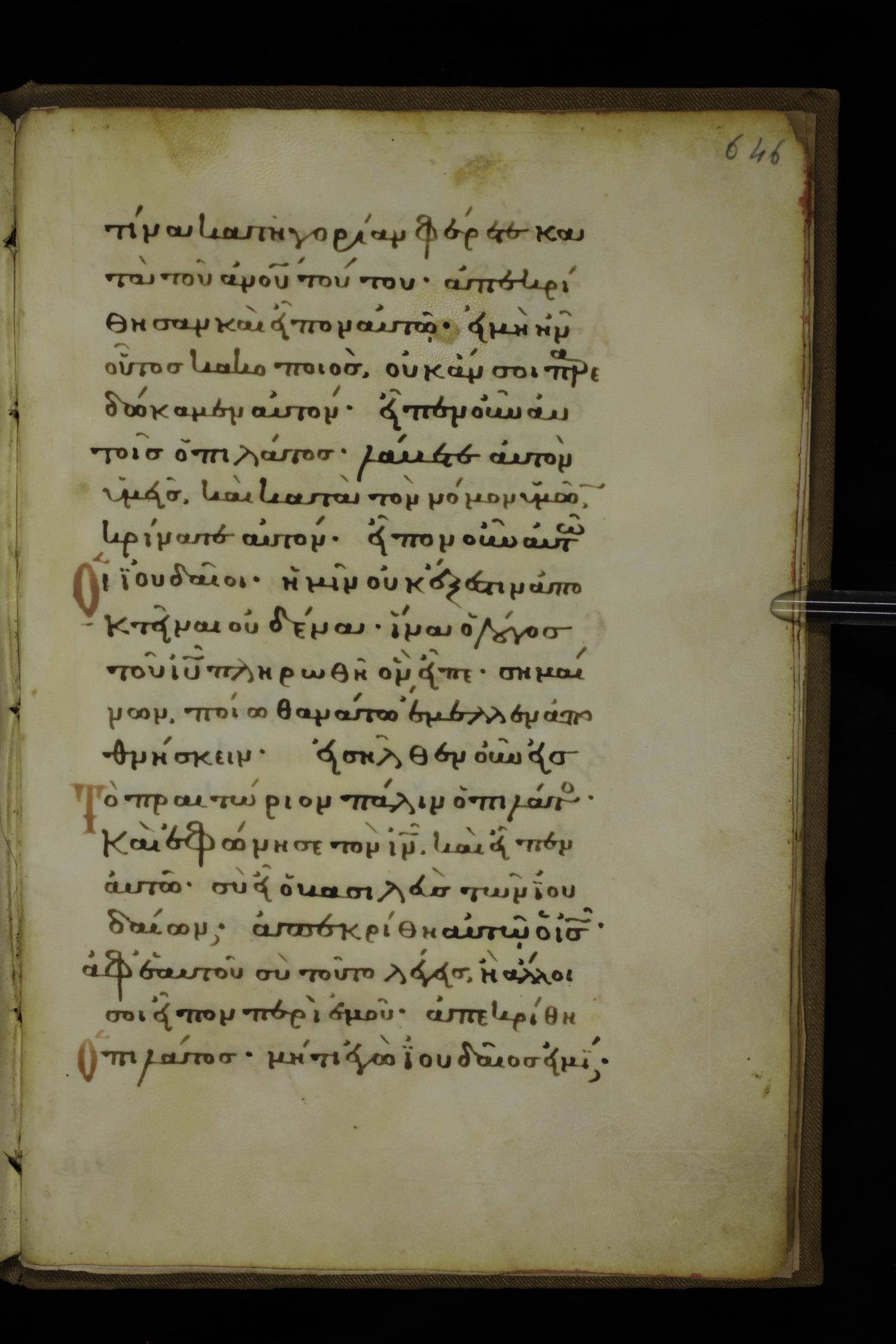 Fourteenth century minuscule of the Gospels on parchment; 332 leaves, 1 column, 20-22 lines per column. Images were taken at the National Library of Greece in Athens.