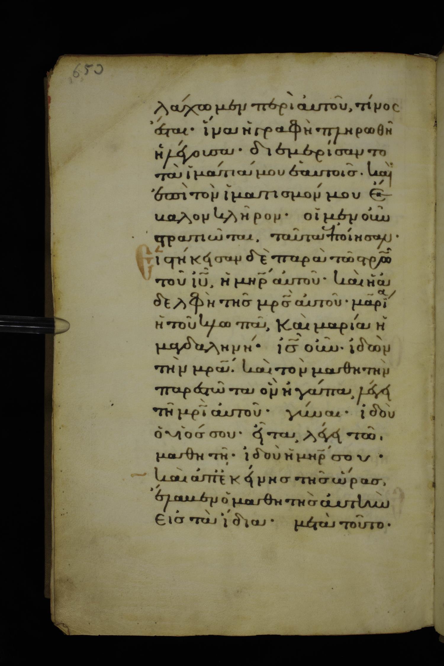 Fourteenth century minuscule of the Gospels on parchment; 332 leaves, 1 column, 20-22 lines per column. Images were taken at the National Library of Greece in Athens.