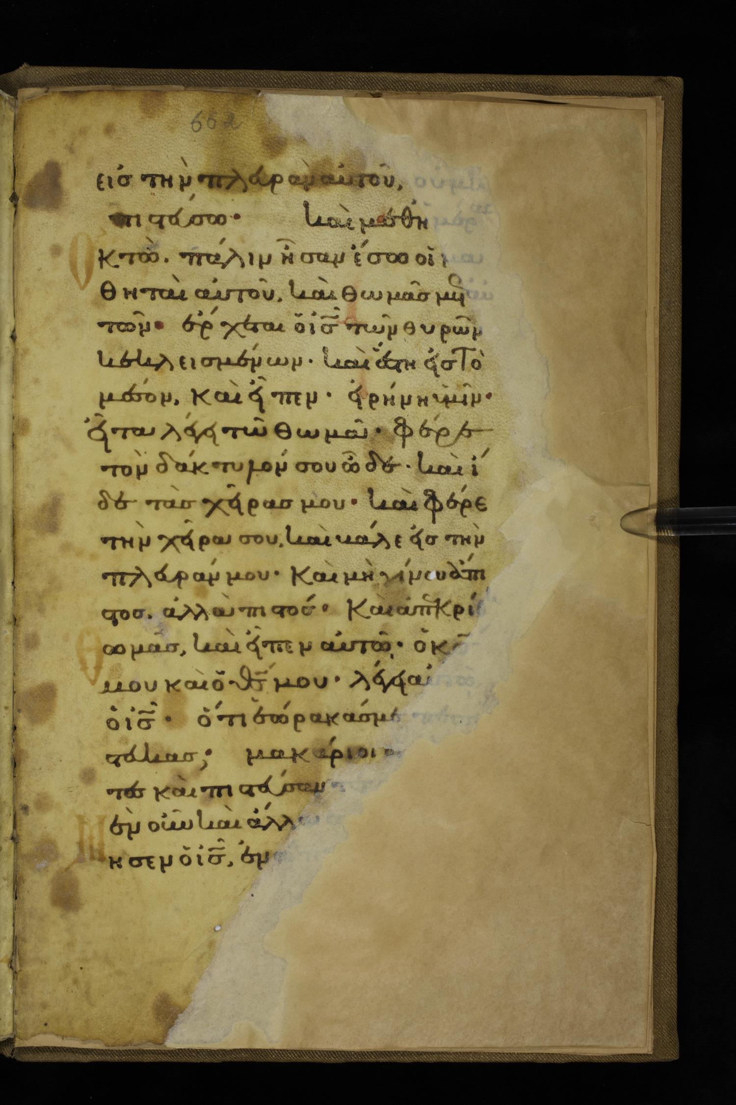Fourteenth century minuscule of the Gospels on parchment; 332 leaves, 1 column, 20-22 lines per column. Images were taken at the National Library of Greece in Athens.