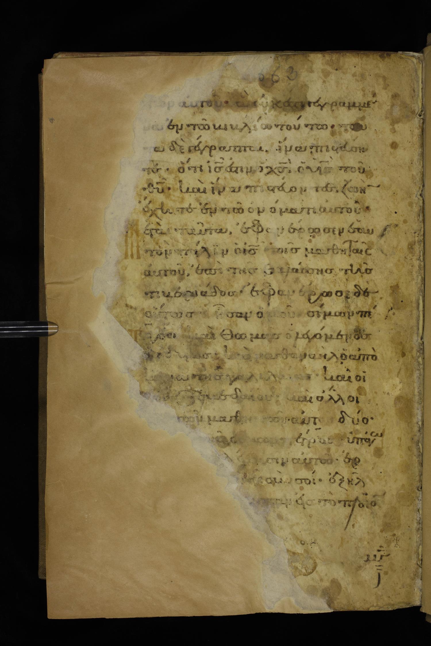 Fourteenth century minuscule of the Gospels on parchment; 332 leaves, 1 column, 20-22 lines per column. Images were taken at the National Library of Greece in Athens.