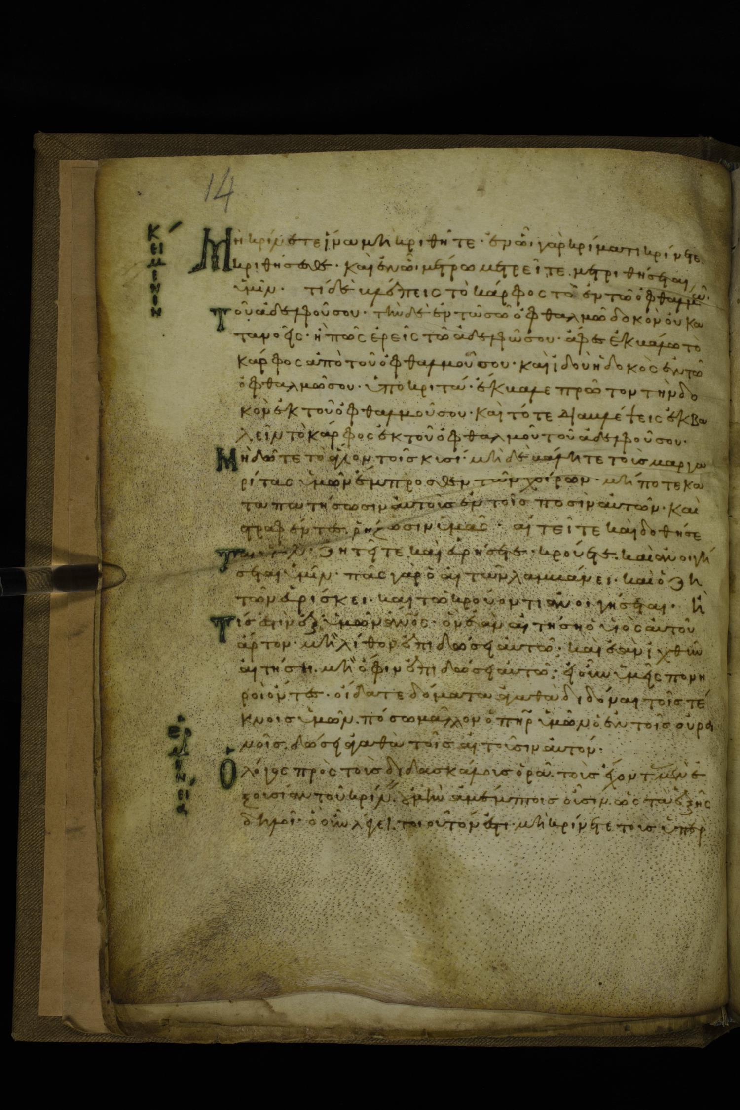 Twelfth century minuscule of the Gospels with commentary on parchment; 270 leaves, 1 column, 24-32 lines per column. Images were taken at the National Library of Greece in Athens.