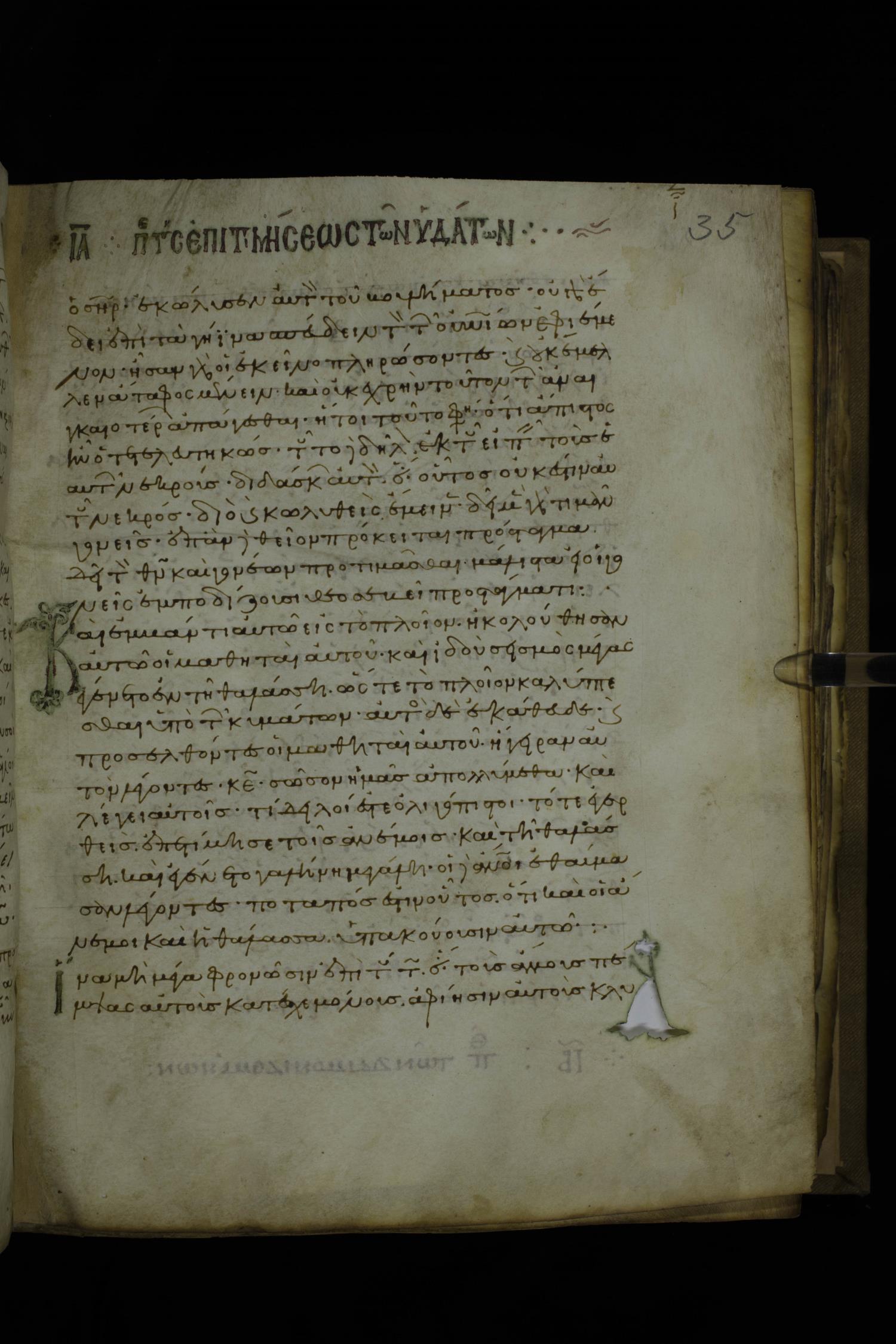 Twelfth century minuscule of the Gospels with commentary on parchment; 270 leaves, 1 column, 24-32 lines per column. Images were taken at the National Library of Greece in Athens.