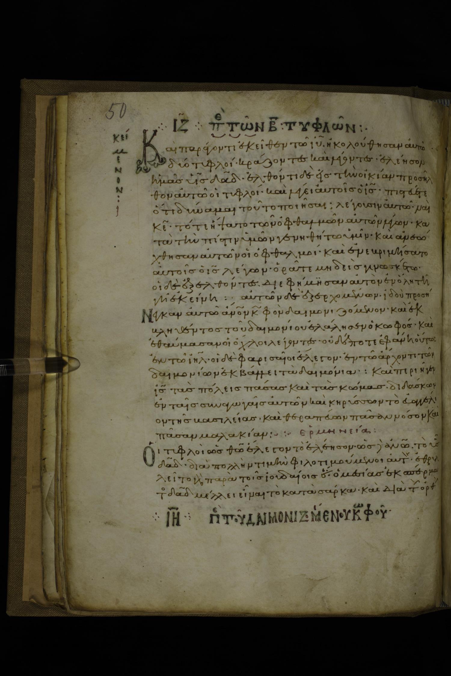 Twelfth century minuscule of the Gospels with commentary on parchment; 270 leaves, 1 column, 24-32 lines per column. Images were taken at the National Library of Greece in Athens.