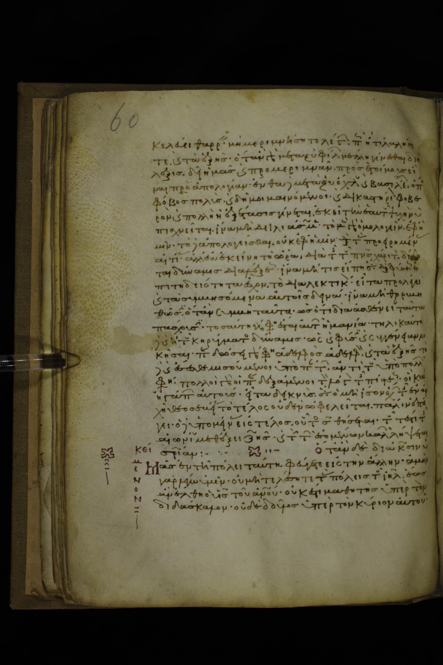 Twelfth century minuscule of the Gospels with commentary on parchment; 270 leaves, 1 column, 24-32 lines per column. Images were taken at the National Library of Greece in Athens.