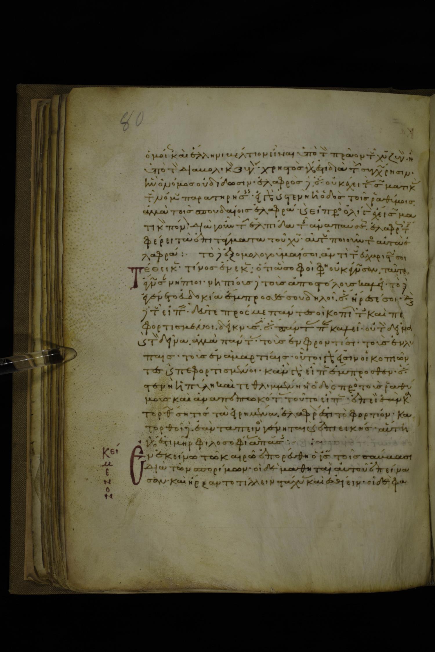 Twelfth century minuscule of the Gospels with commentary on parchment; 270 leaves, 1 column, 24-32 lines per column. Images were taken at the National Library of Greece in Athens.