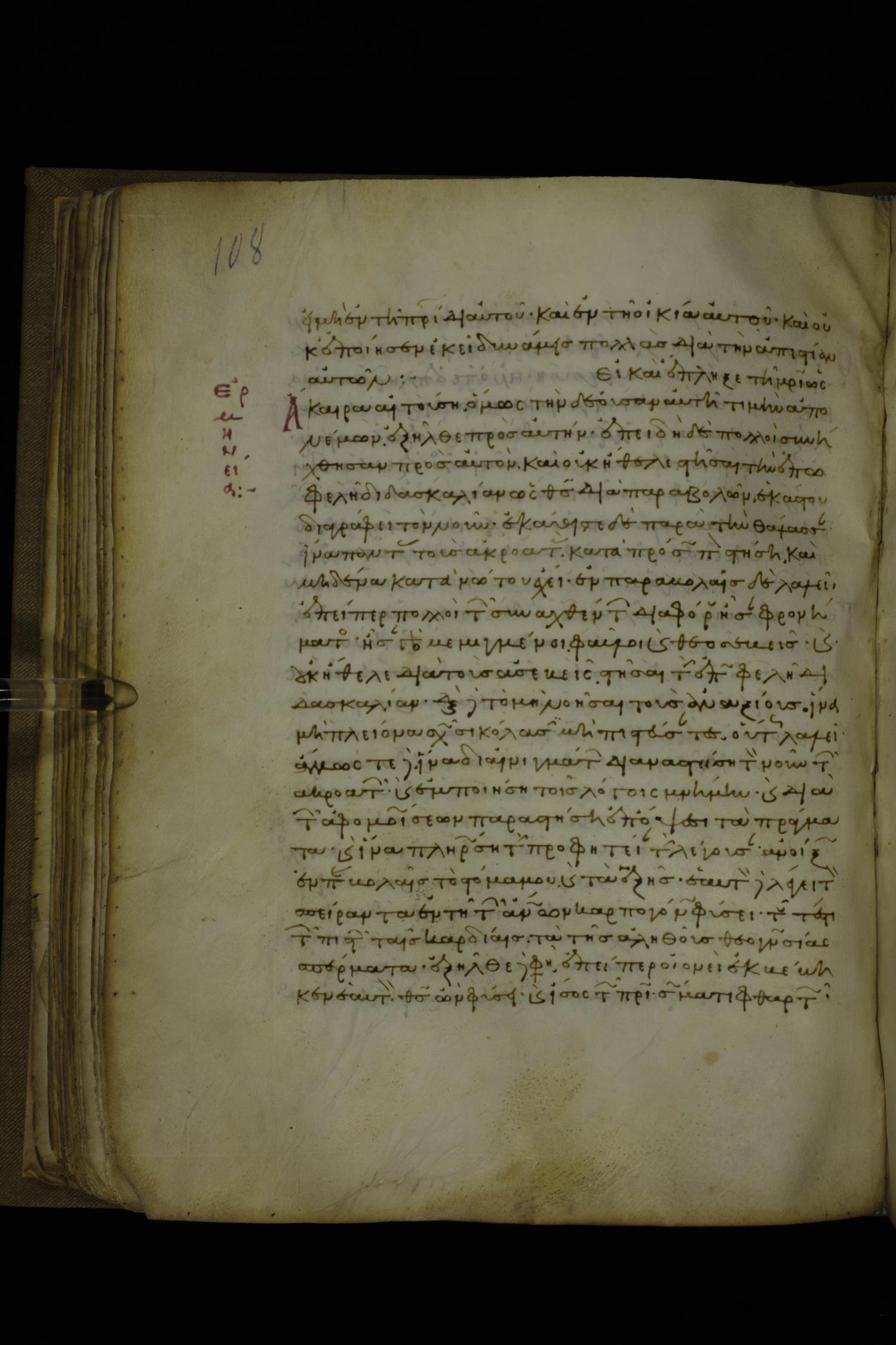 Twelfth century minuscule of the Gospels with commentary on parchment; 270 leaves, 1 column, 24-32 lines per column. Images were taken at the National Library of Greece in Athens.