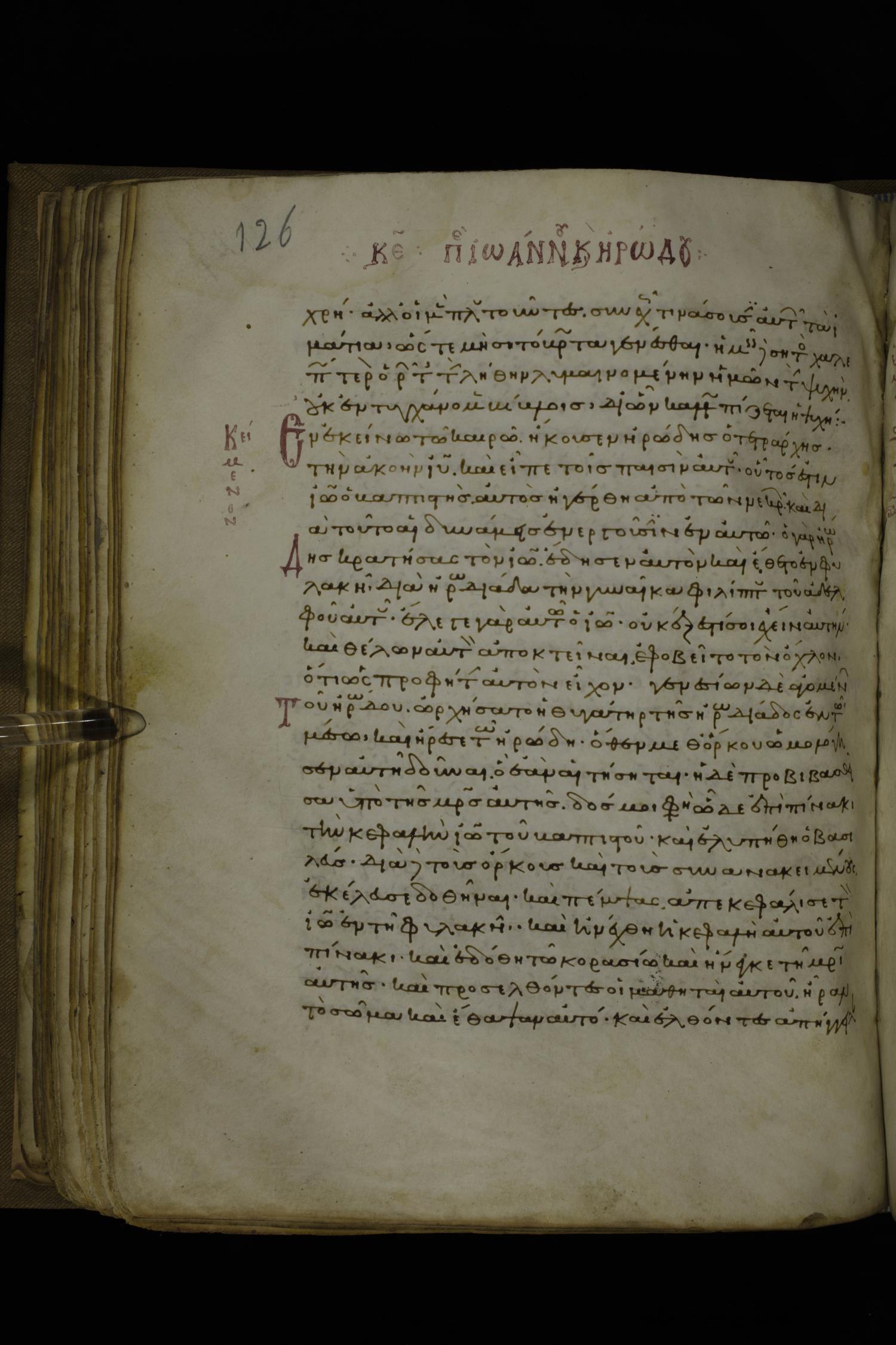 Twelfth century minuscule of the Gospels with commentary on parchment; 270 leaves, 1 column, 24-32 lines per column. Images were taken at the National Library of Greece in Athens.