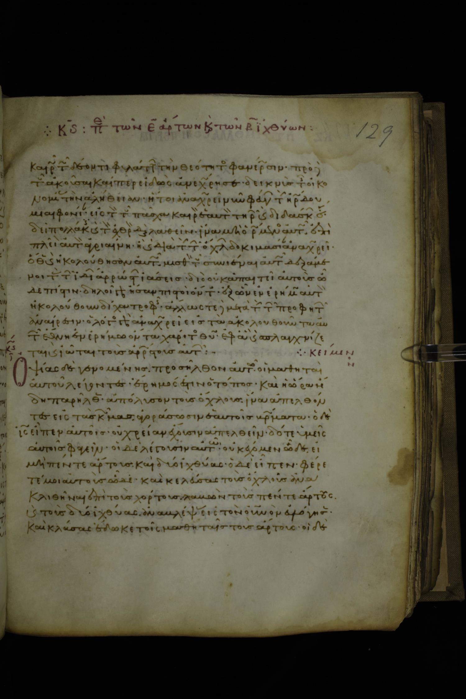 Twelfth century minuscule of the Gospels with commentary on parchment; 270 leaves, 1 column, 24-32 lines per column. Images were taken at the National Library of Greece in Athens.