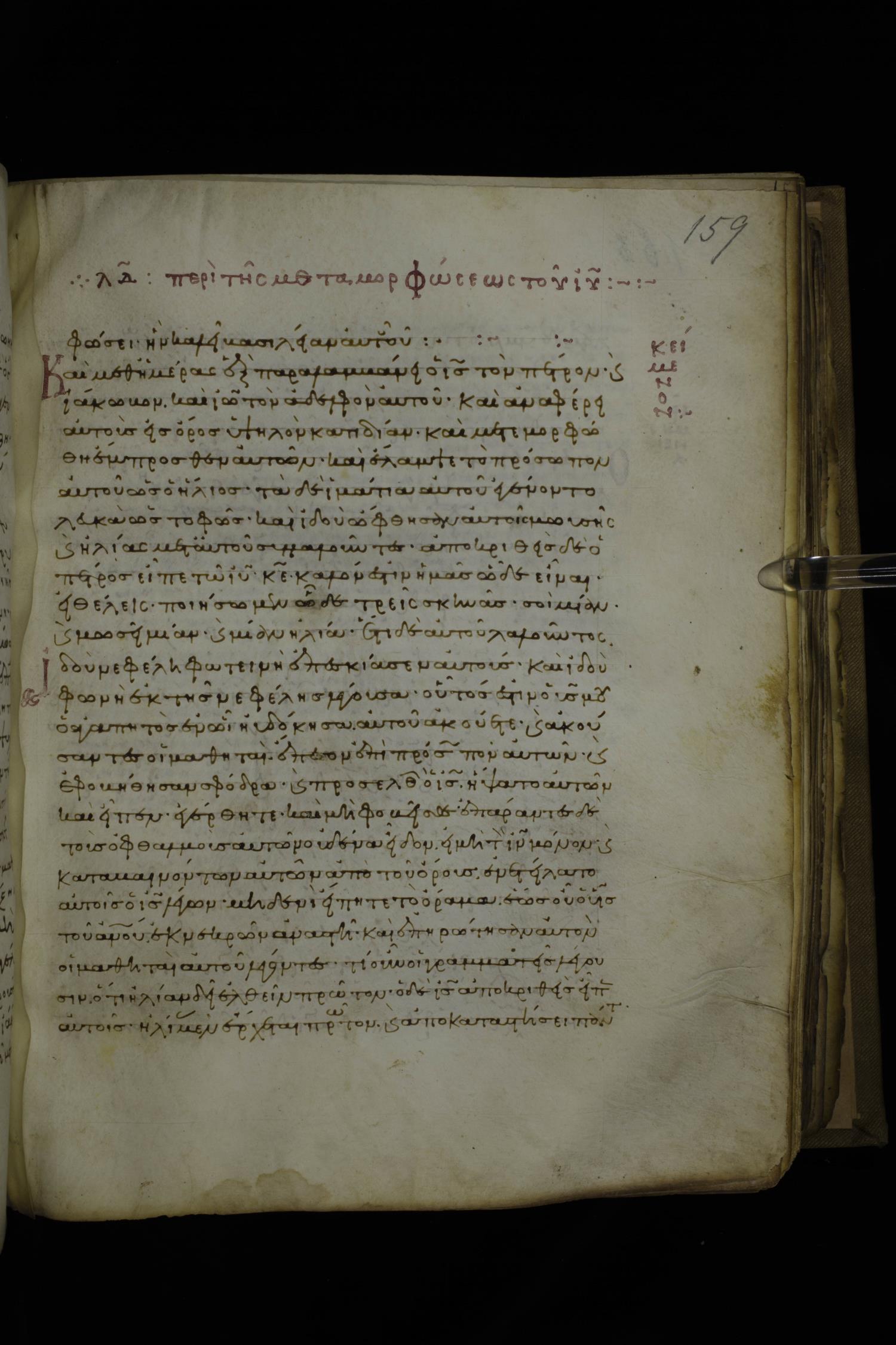 Twelfth century minuscule of the Gospels with commentary on parchment; 270 leaves, 1 column, 24-32 lines per column. Images were taken at the National Library of Greece in Athens.