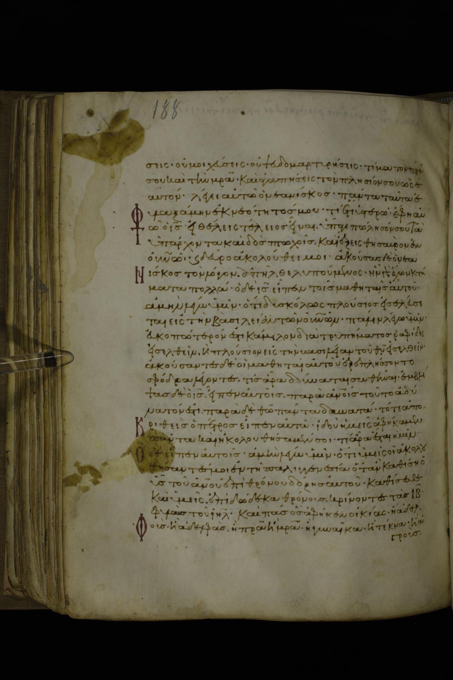 Twelfth century minuscule of the Gospels with commentary on parchment; 270 leaves, 1 column, 24-32 lines per column. Images were taken at the National Library of Greece in Athens.