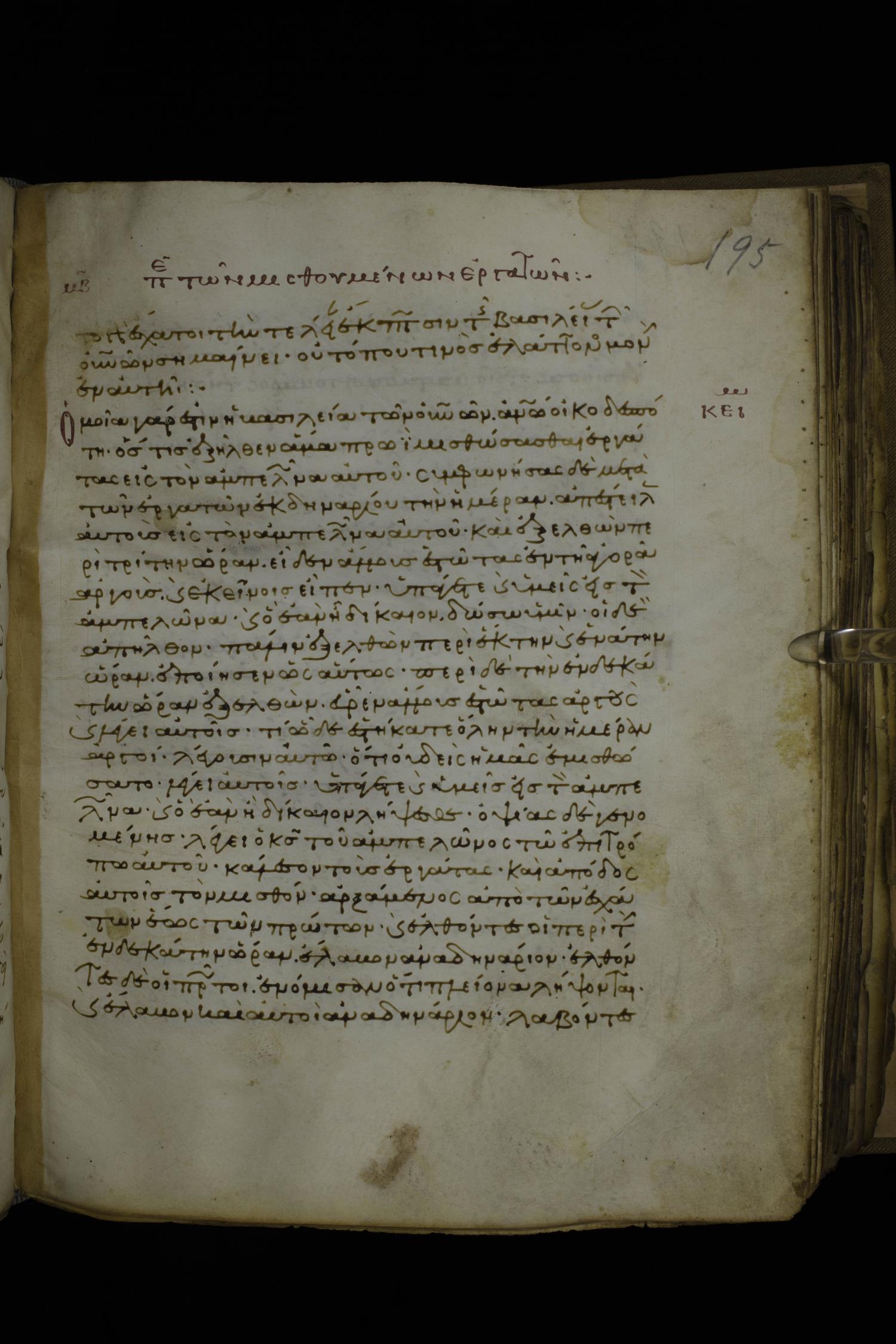 Twelfth century minuscule of the Gospels with commentary on parchment; 270 leaves, 1 column, 24-32 lines per column. Images were taken at the National Library of Greece in Athens.