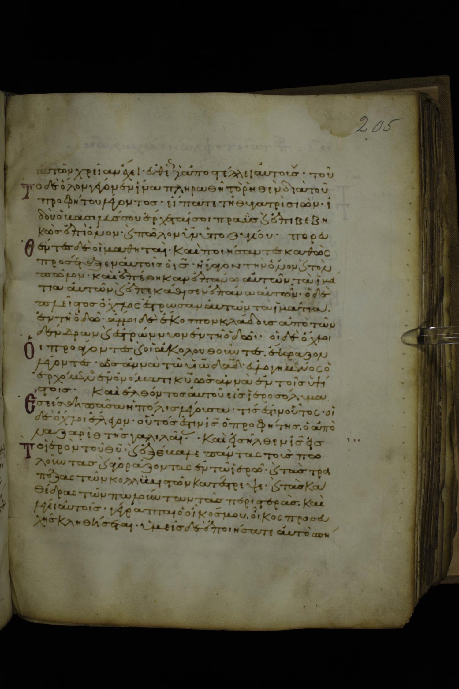 Twelfth century minuscule of the Gospels with commentary on parchment; 270 leaves, 1 column, 24-32 lines per column. Images were taken at the National Library of Greece in Athens.