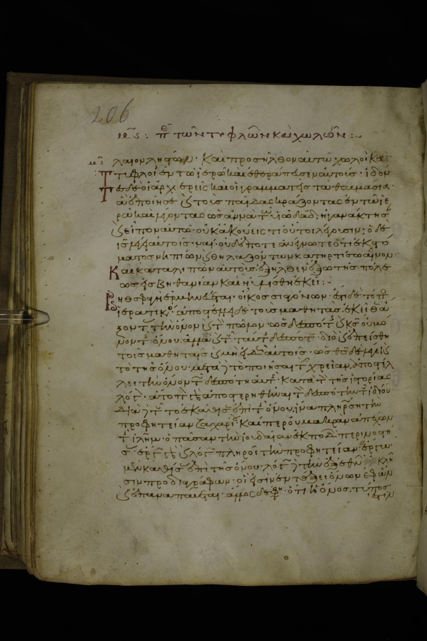 Twelfth century minuscule of the Gospels with commentary on parchment; 270 leaves, 1 column, 24-32 lines per column. Images were taken at the National Library of Greece in Athens.
