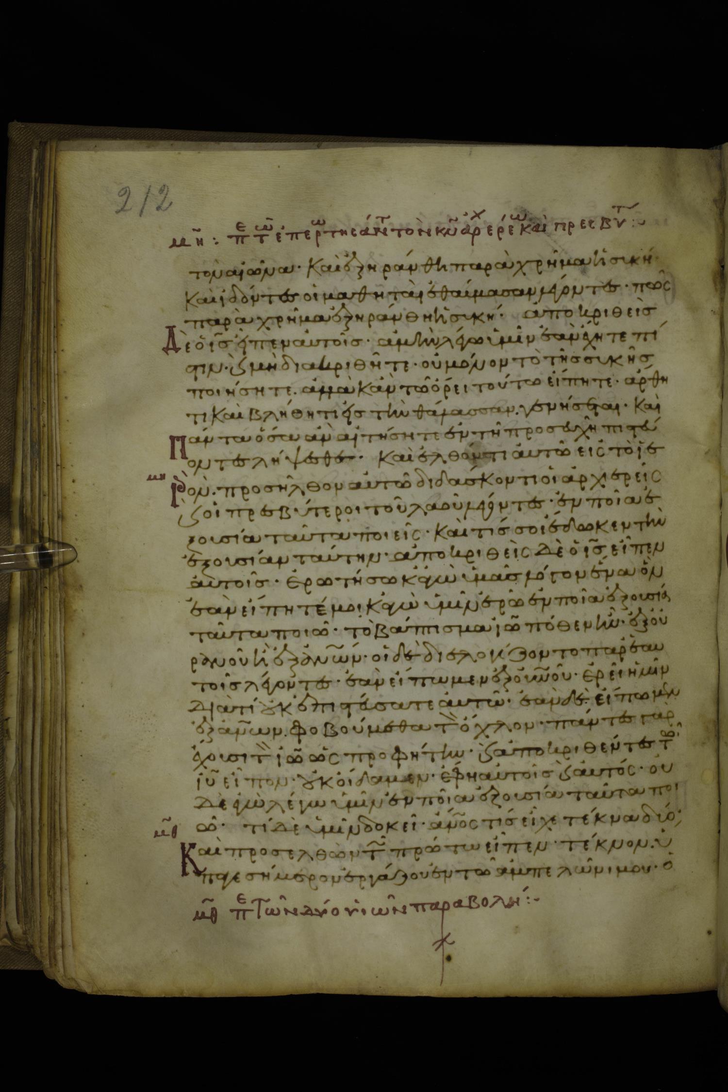 Twelfth century minuscule of the Gospels with commentary on parchment; 270 leaves, 1 column, 24-32 lines per column. Images were taken at the National Library of Greece in Athens.
