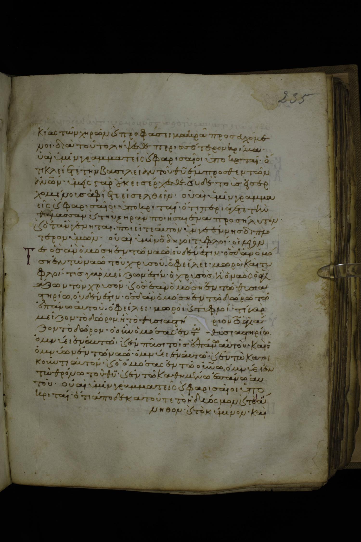 Twelfth century minuscule of the Gospels with commentary on parchment; 270 leaves, 1 column, 24-32 lines per column. Images were taken at the National Library of Greece in Athens.
