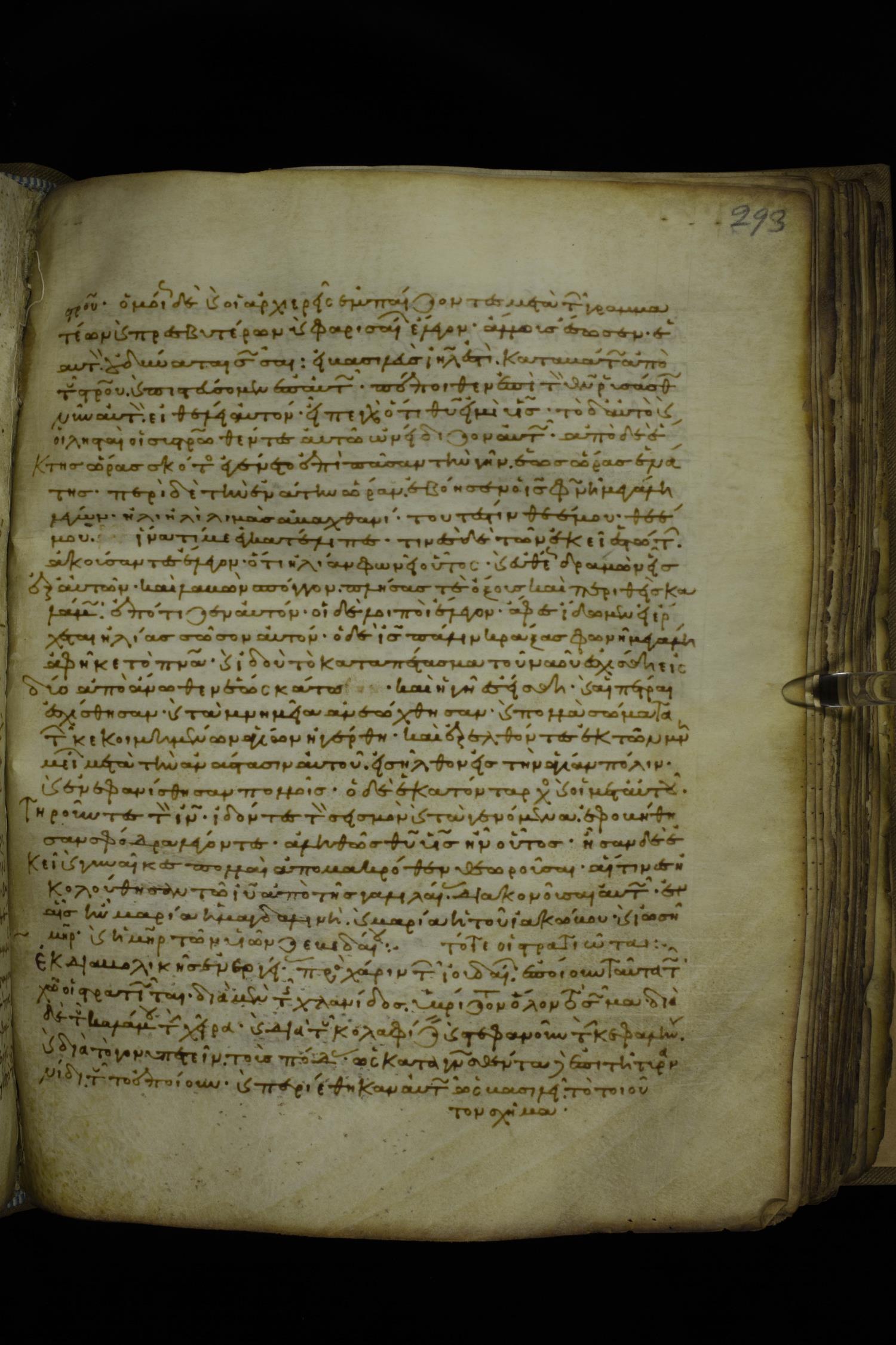 Twelfth century minuscule of the Gospels with commentary on parchment; 270 leaves, 1 column, 24-32 lines per column. Images were taken at the National Library of Greece in Athens.