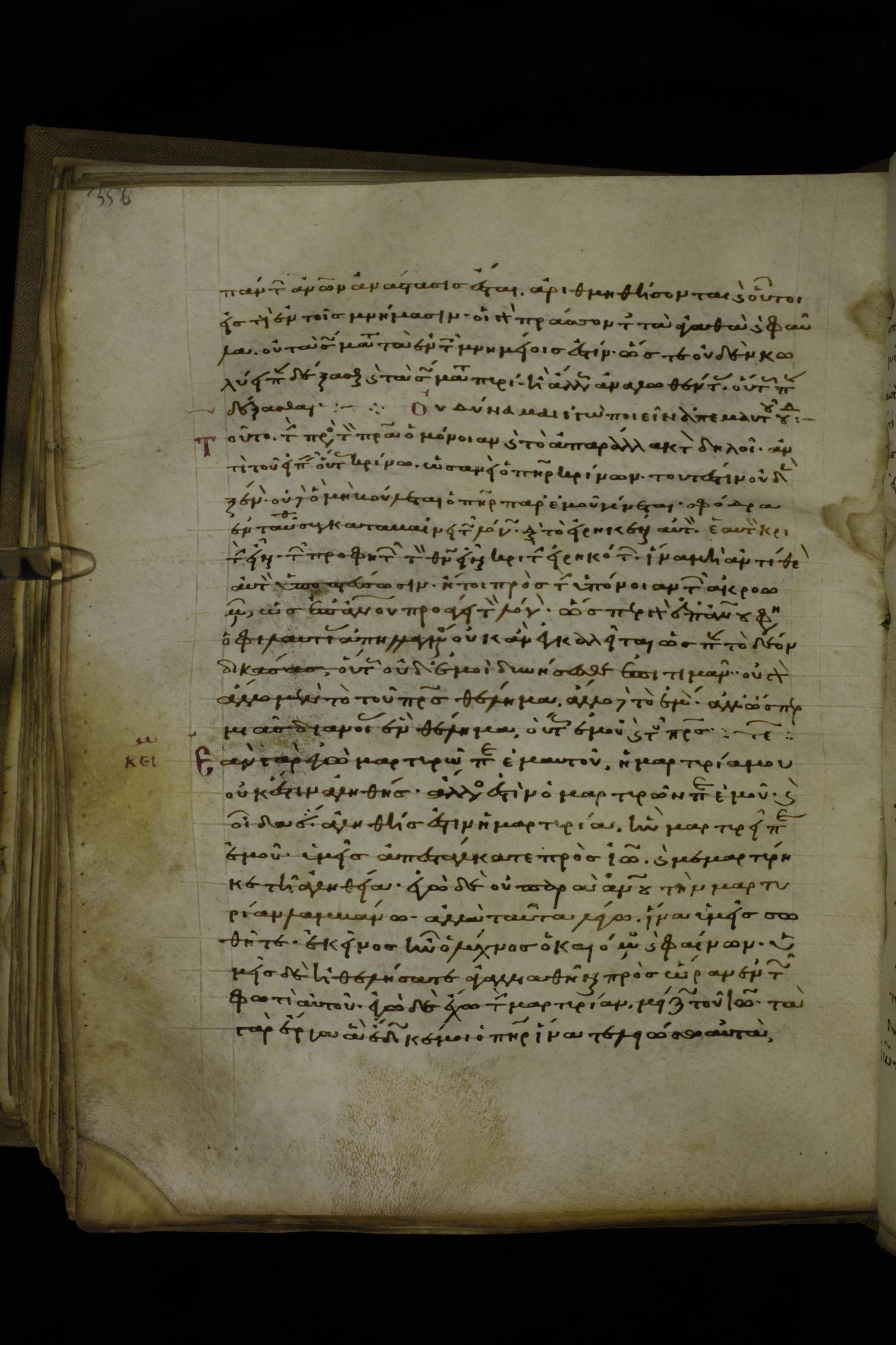 Twelfth century minuscule of the Gospels with commentary on parchment; 270 leaves, 1 column, 24-32 lines per column. Images were taken at the National Library of Greece in Athens.