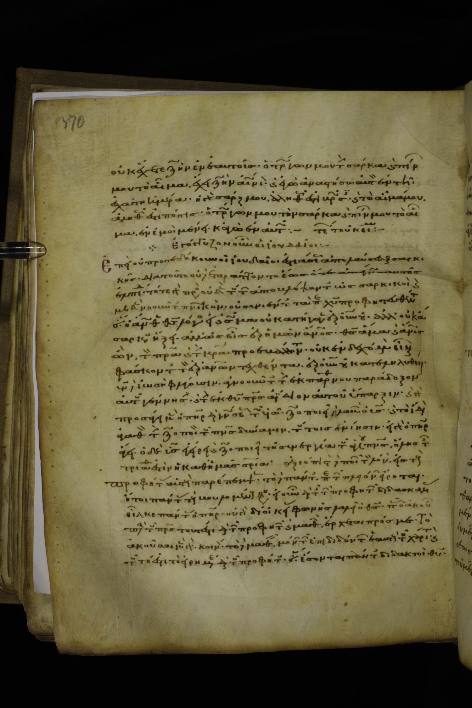 Twelfth century minuscule of the Gospels with commentary on parchment; 270 leaves, 1 column, 24-32 lines per column. Images were taken at the National Library of Greece in Athens.