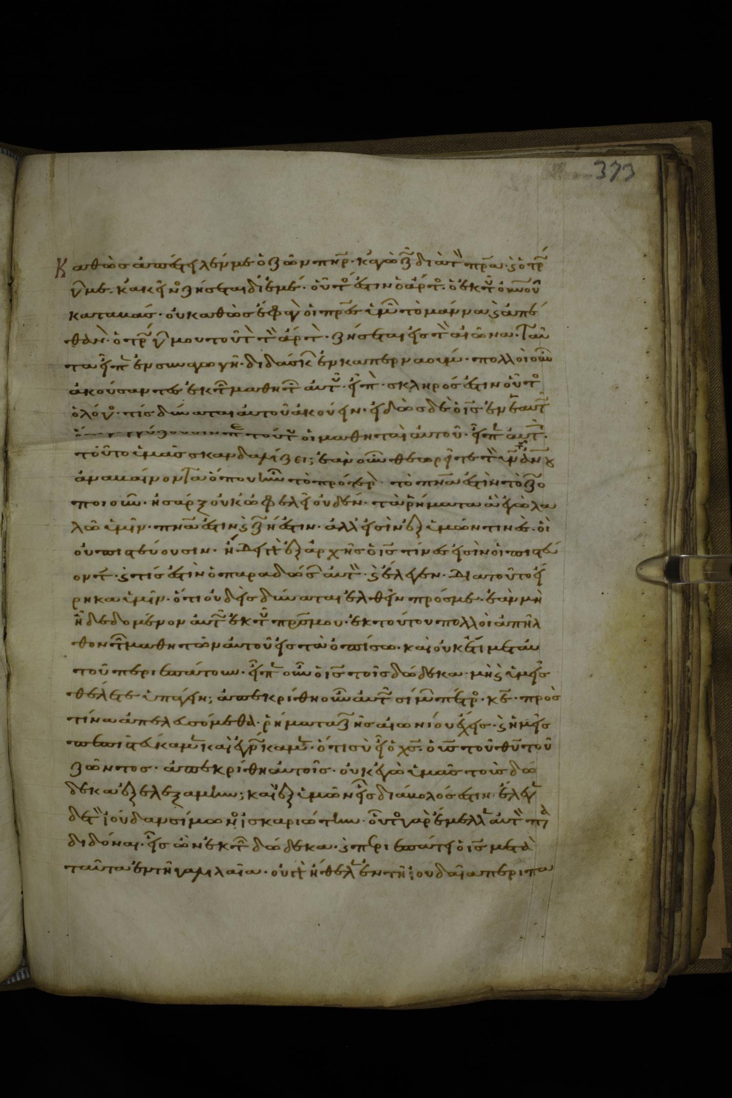 Twelfth century minuscule of the Gospels with commentary on parchment; 270 leaves, 1 column, 24-32 lines per column. Images were taken at the National Library of Greece in Athens.