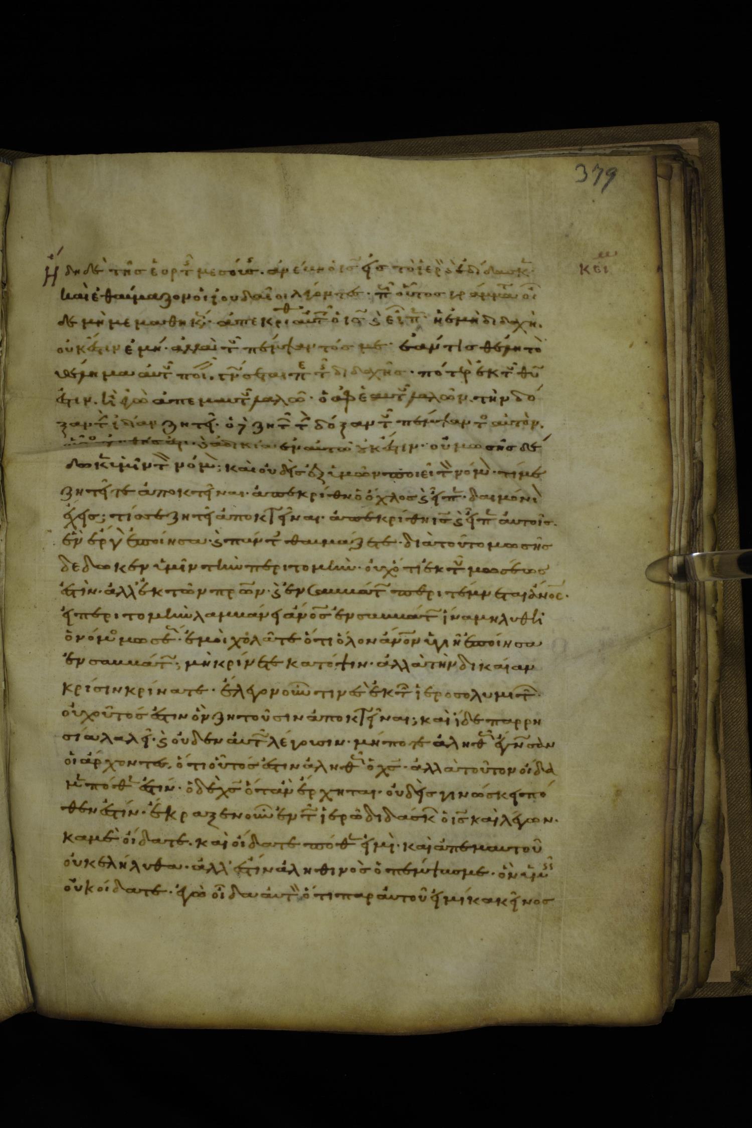 Twelfth century minuscule of the Gospels with commentary on parchment; 270 leaves, 1 column, 24-32 lines per column. Images were taken at the National Library of Greece in Athens.