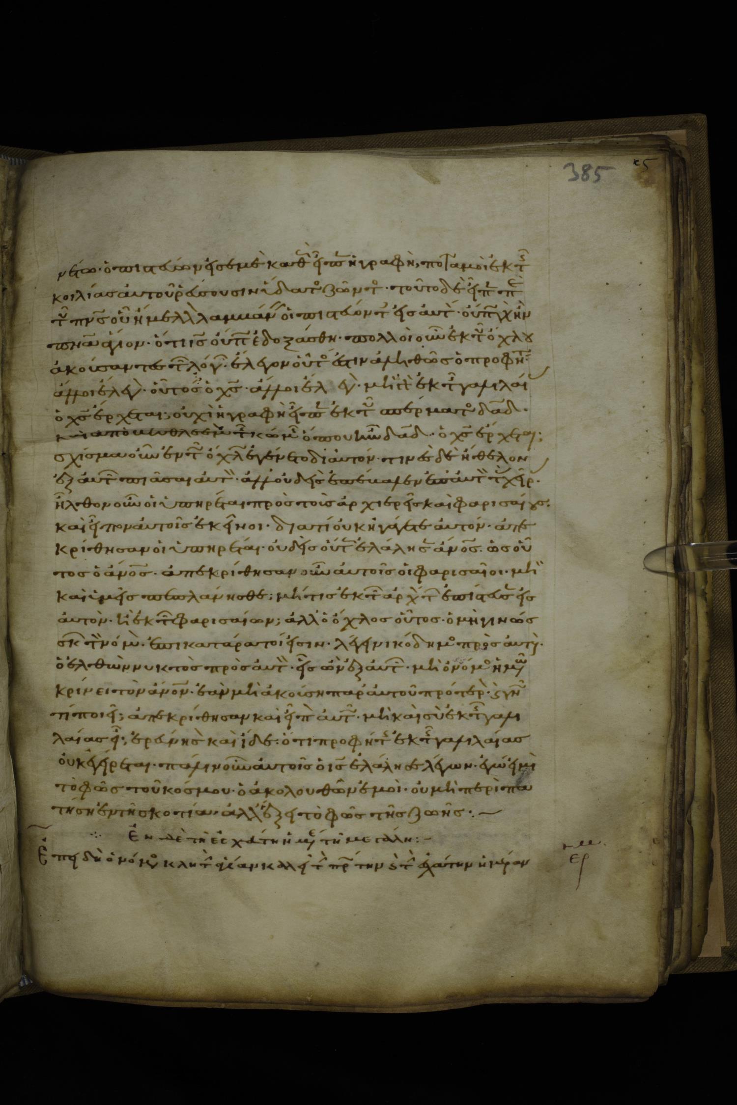 Twelfth century minuscule of the Gospels with commentary on parchment; 270 leaves, 1 column, 24-32 lines per column. Images were taken at the National Library of Greece in Athens.