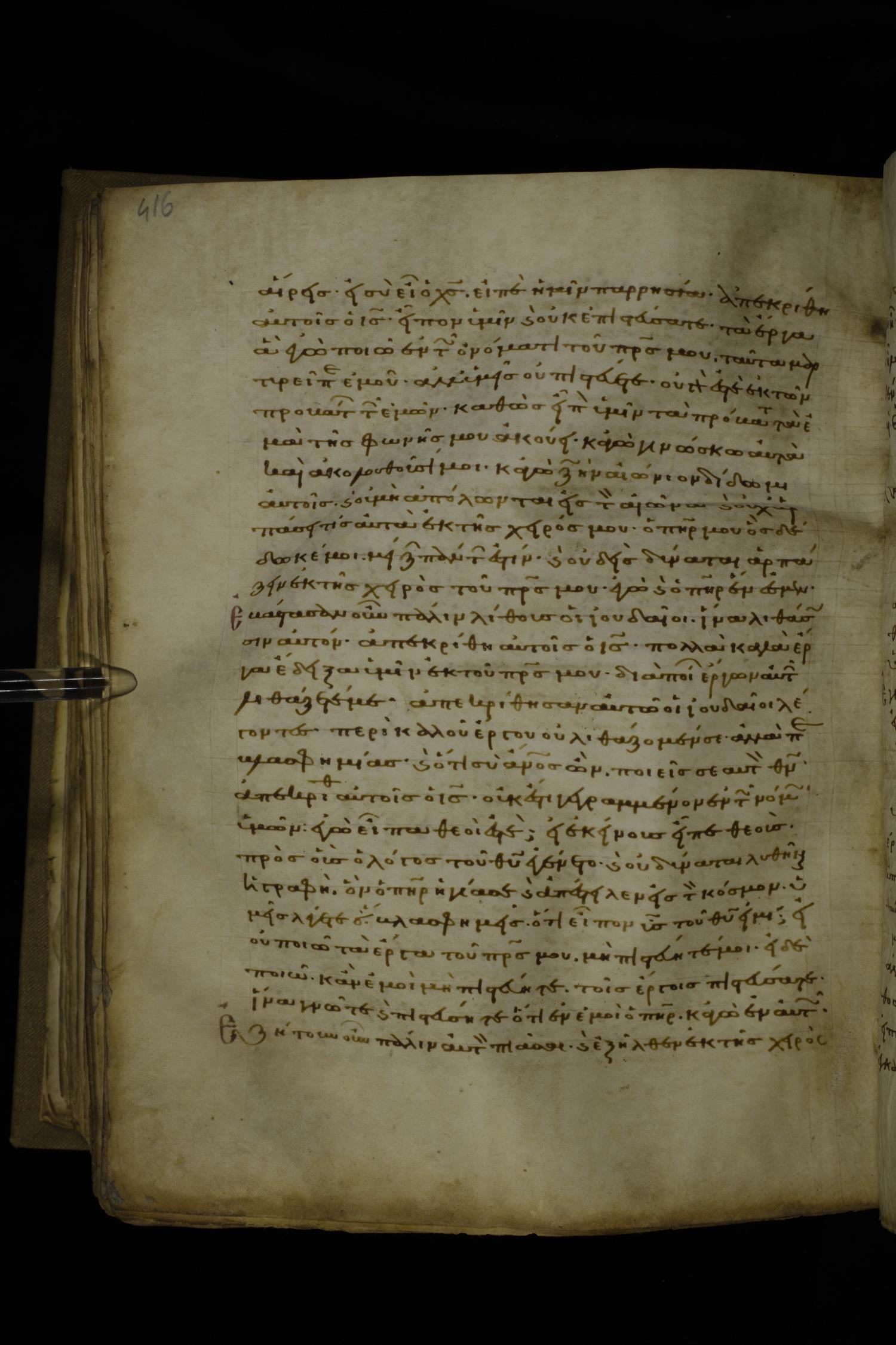 Twelfth century minuscule of the Gospels with commentary on parchment; 270 leaves, 1 column, 24-32 lines per column. Images were taken at the National Library of Greece in Athens.