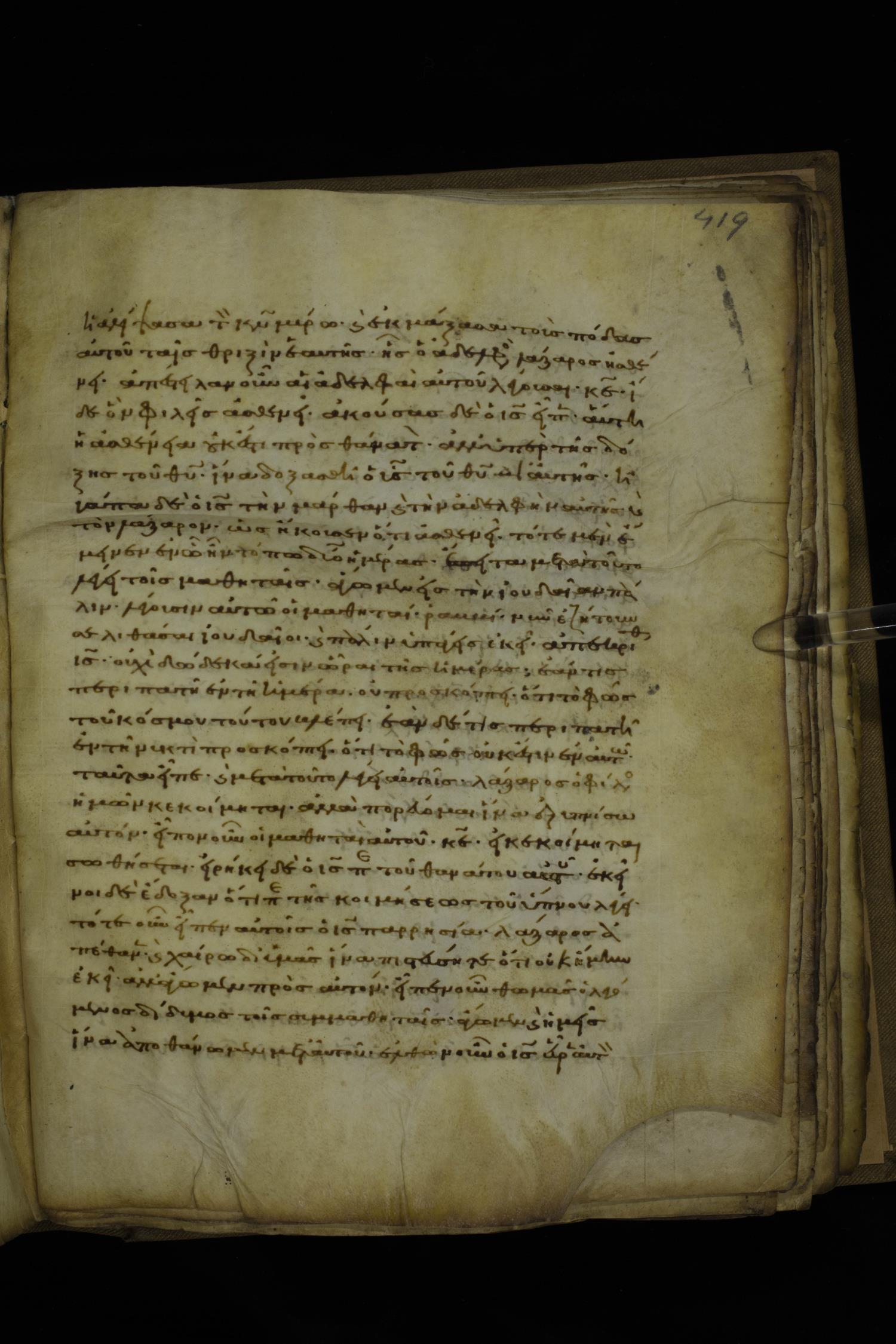 Twelfth century minuscule of the Gospels with commentary on parchment; 270 leaves, 1 column, 24-32 lines per column. Images were taken at the National Library of Greece in Athens.