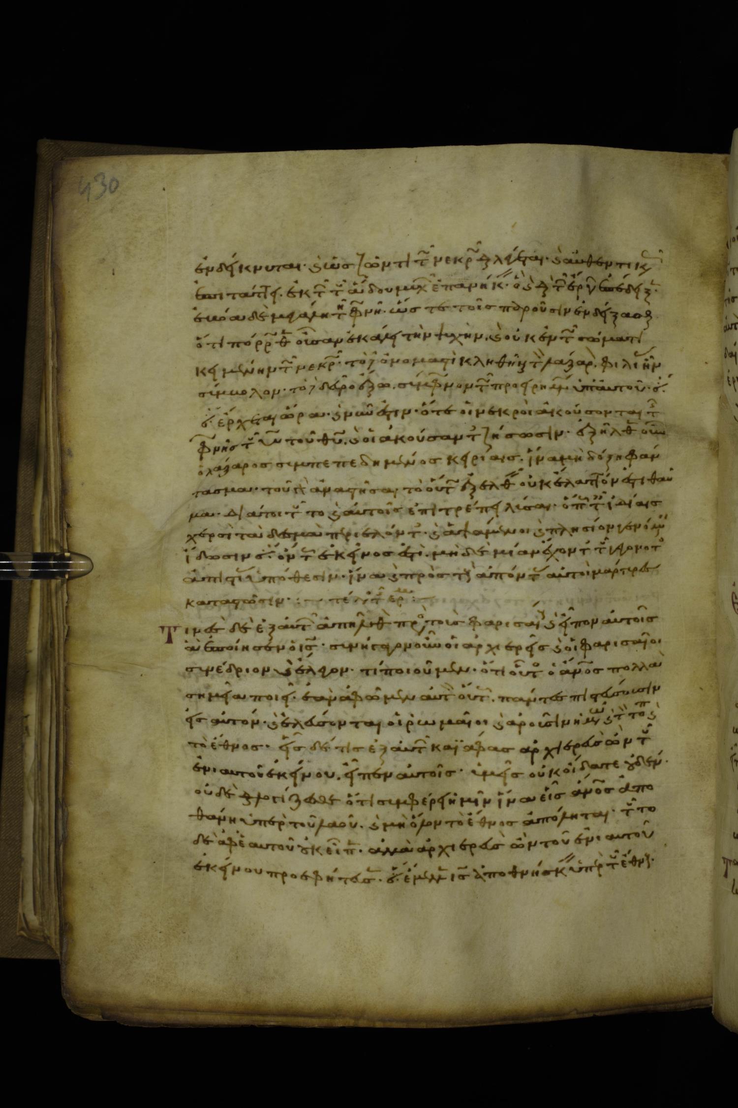 Twelfth century minuscule of the Gospels with commentary on parchment; 270 leaves, 1 column, 24-32 lines per column. Images were taken at the National Library of Greece in Athens.
