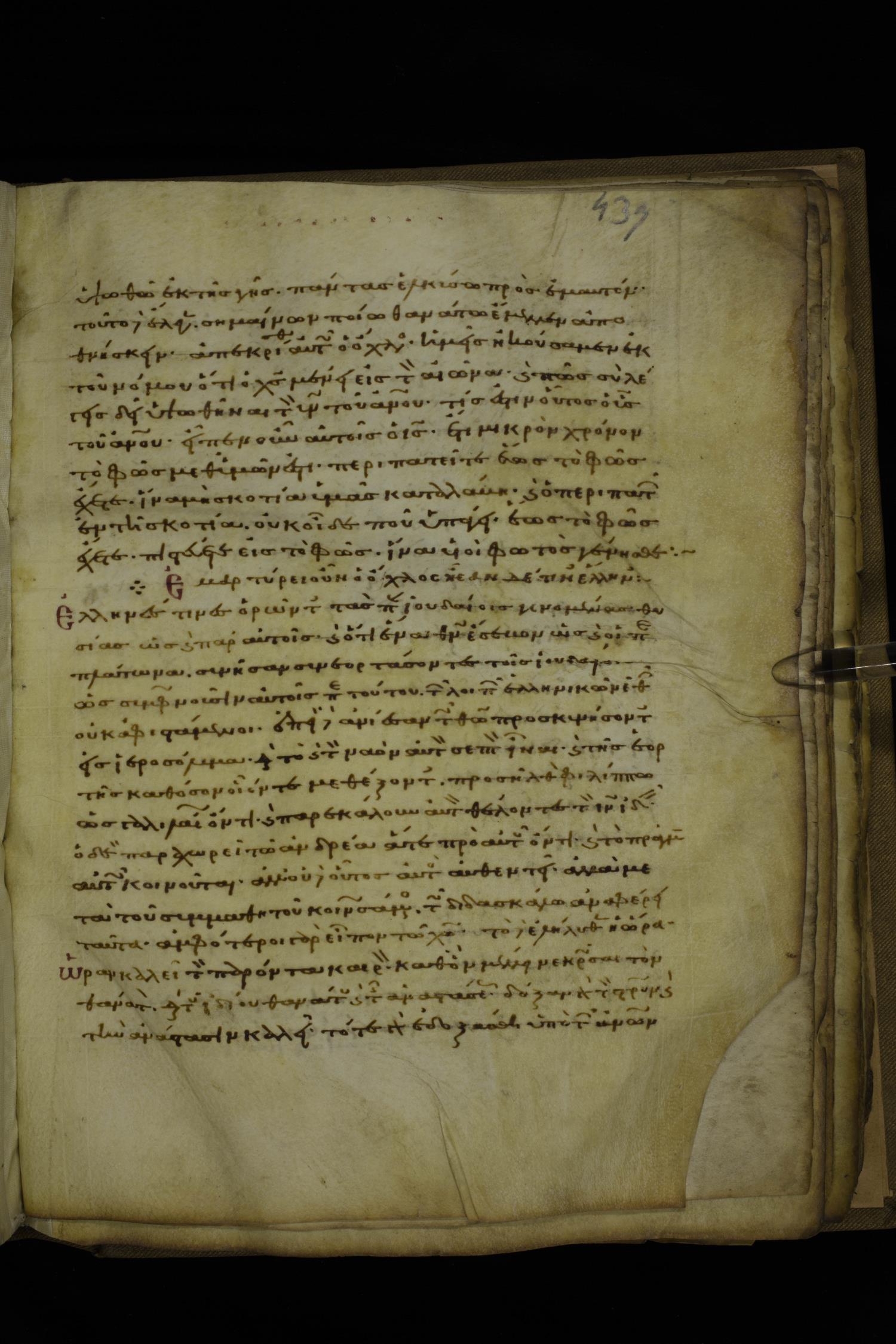 Twelfth century minuscule of the Gospels with commentary on parchment; 270 leaves, 1 column, 24-32 lines per column. Images were taken at the National Library of Greece in Athens.