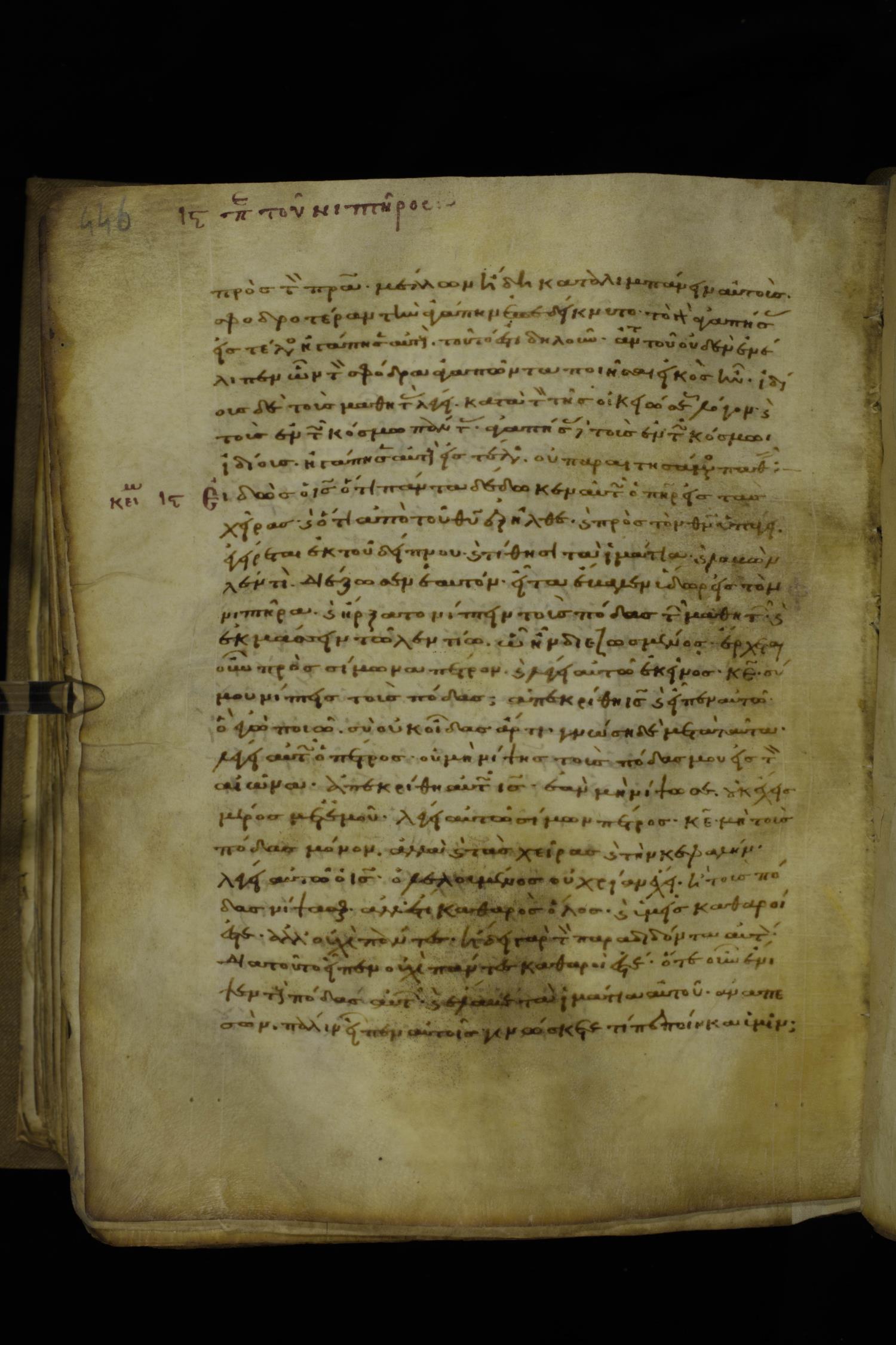 Twelfth century minuscule of the Gospels with commentary on parchment; 270 leaves, 1 column, 24-32 lines per column. Images were taken at the National Library of Greece in Athens.