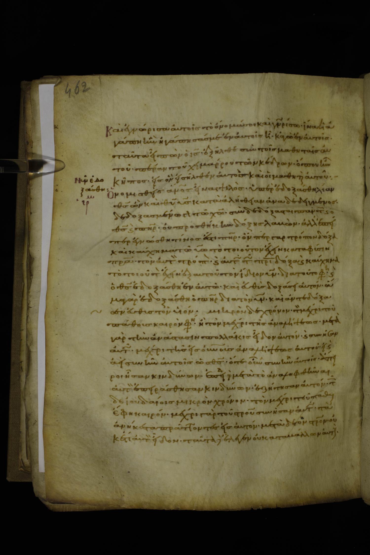 Twelfth century minuscule of the Gospels with commentary on parchment; 270 leaves, 1 column, 24-32 lines per column. Images were taken at the National Library of Greece in Athens.