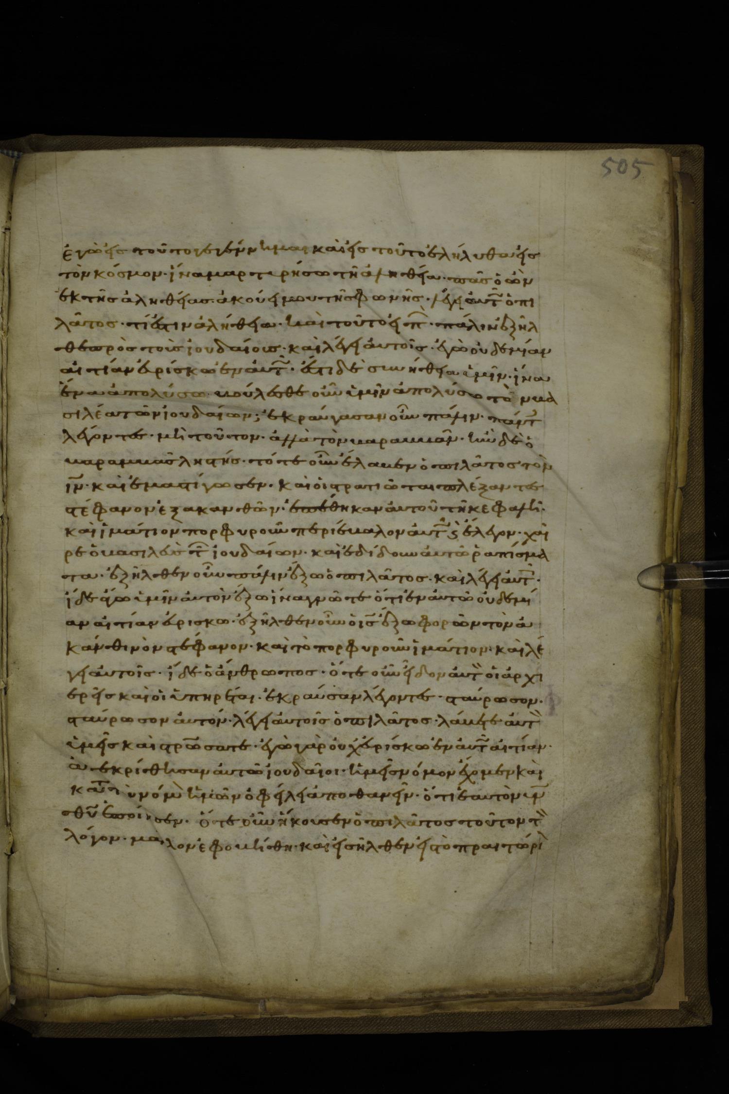 Twelfth century minuscule of the Gospels with commentary on parchment; 270 leaves, 1 column, 24-32 lines per column. Images were taken at the National Library of Greece in Athens.