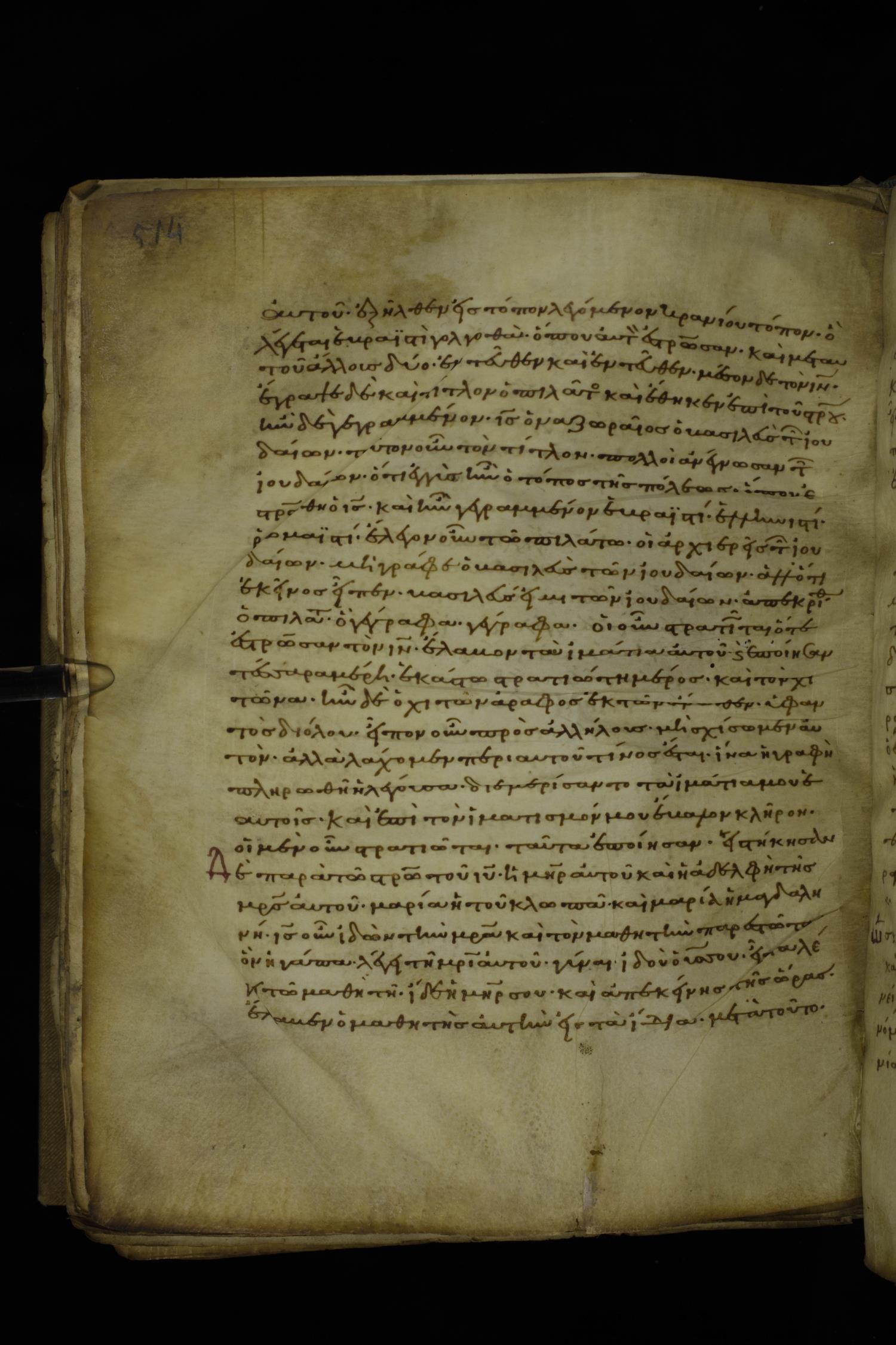 Twelfth century minuscule of the Gospels with commentary on parchment; 270 leaves, 1 column, 24-32 lines per column. Images were taken at the National Library of Greece in Athens.