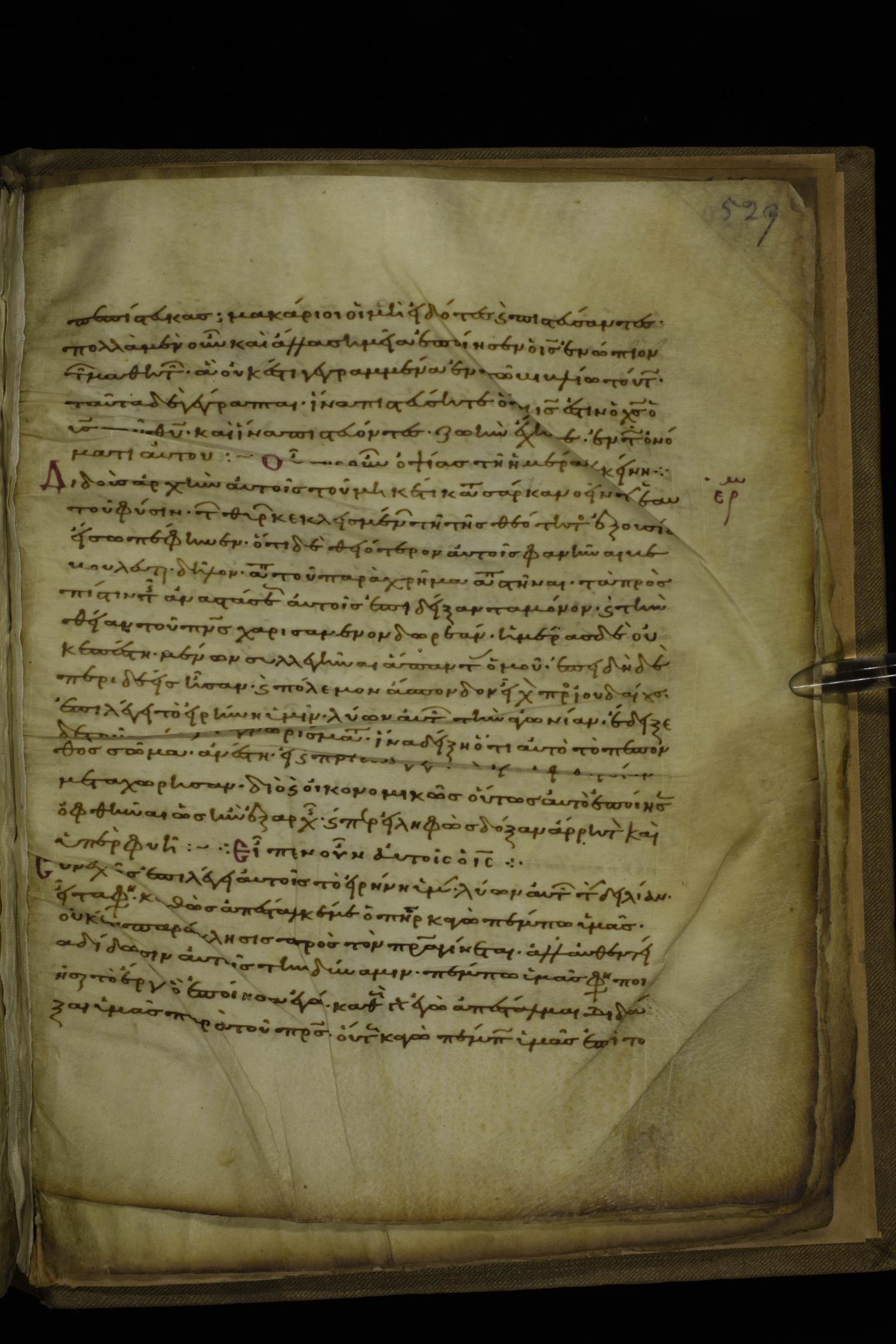 Twelfth century minuscule of the Gospels with commentary on parchment; 270 leaves, 1 column, 24-32 lines per column. Images were taken at the National Library of Greece in Athens.
