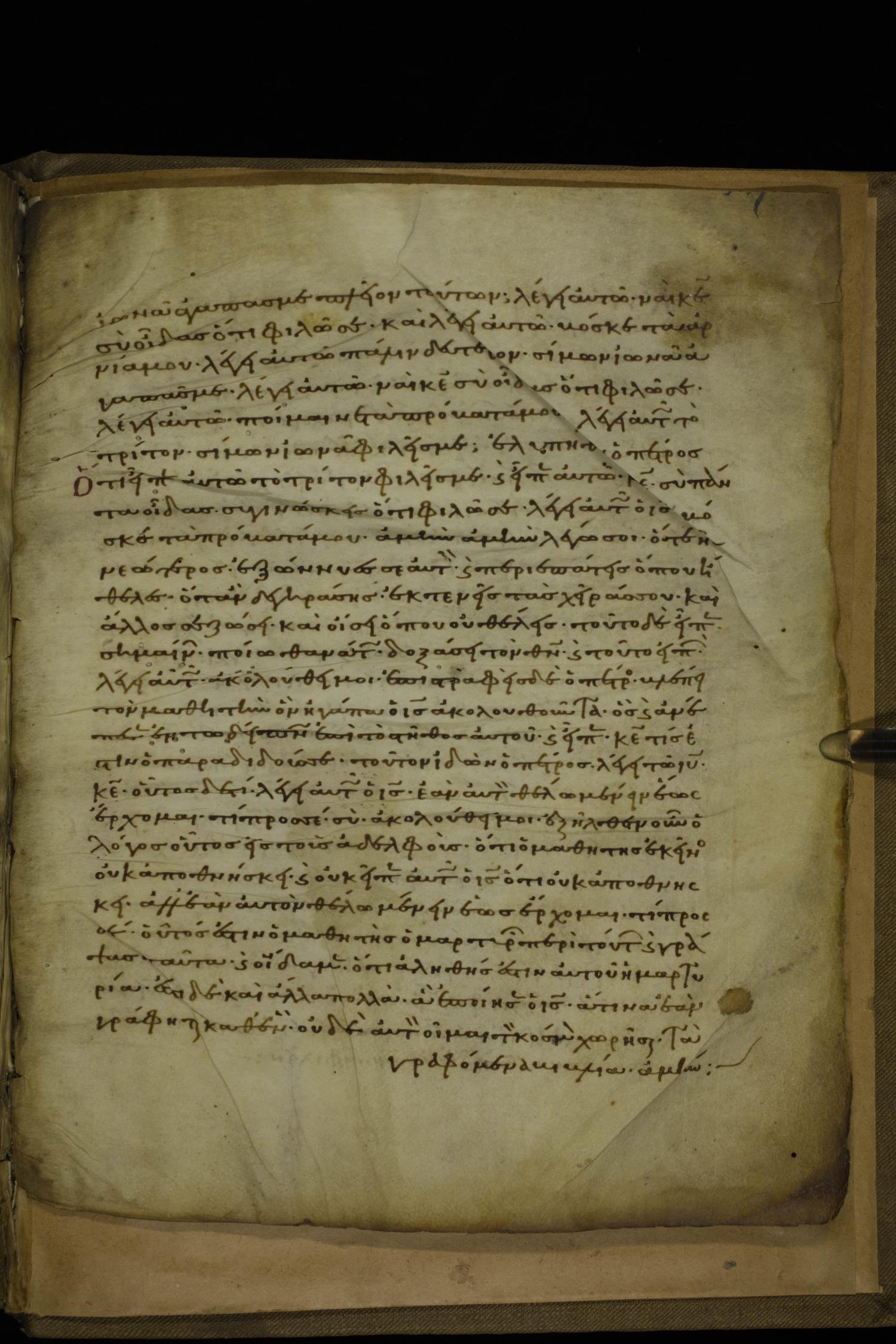 Twelfth century minuscule of the Gospels with commentary on parchment; 270 leaves, 1 column, 24-32 lines per column. Images were taken at the National Library of Greece in Athens.