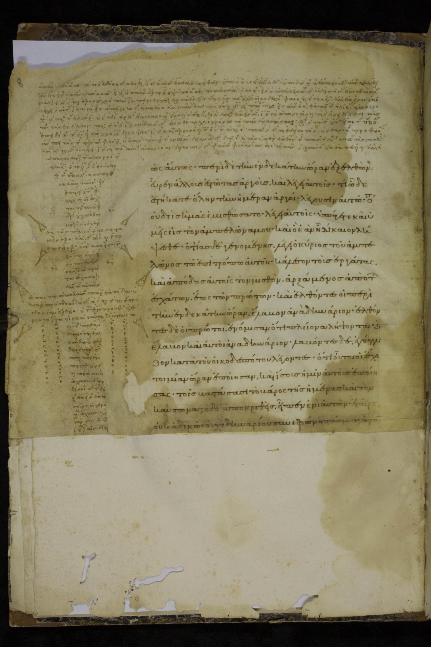Tenth century minuscule of the Gospels with commentary on parchment; 153 leaves, 1 column, 20 lines per page. Images were taken at the National Library of Greece in Athens.