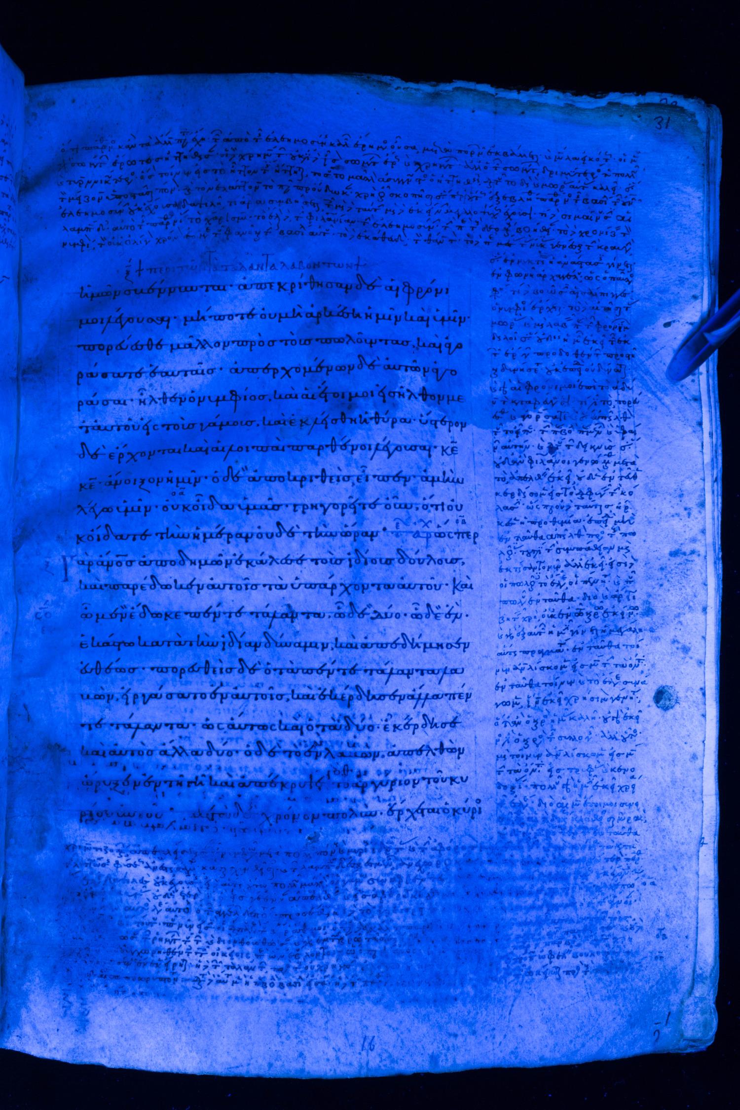 Tenth century minuscule of the Gospels with commentary on parchment; 153 leaves, 1 column, 20 lines per page. Images were taken at the National Library of Greece in Athens.