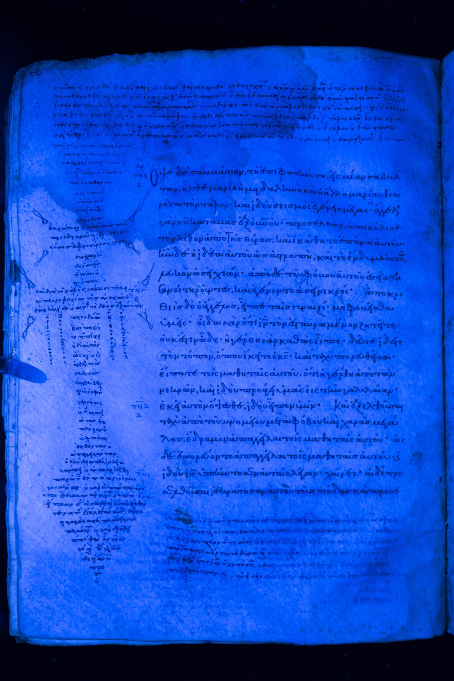 Tenth century minuscule of the Gospels with commentary on parchment; 153 leaves, 1 column, 20 lines per page. Images were taken at the National Library of Greece in Athens.